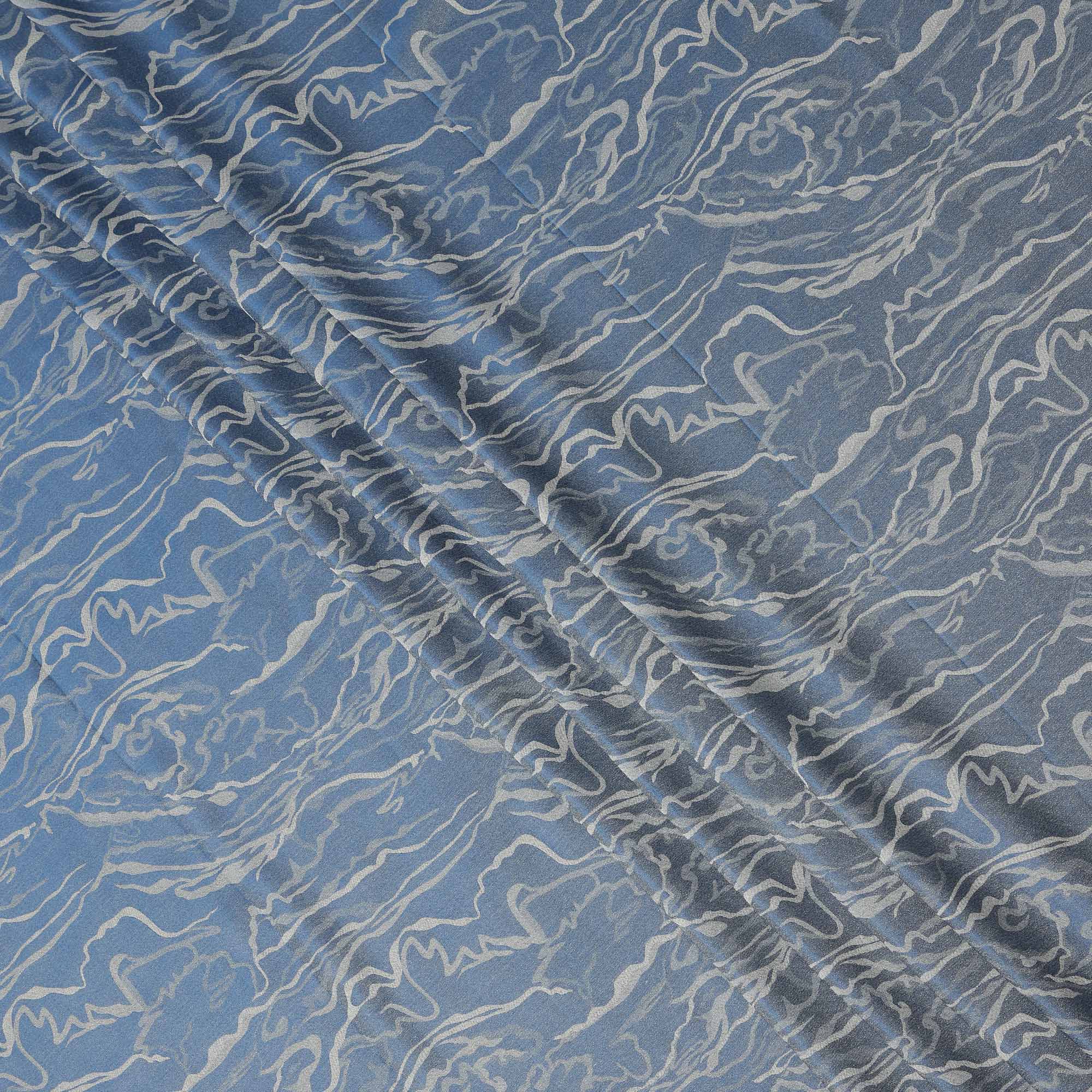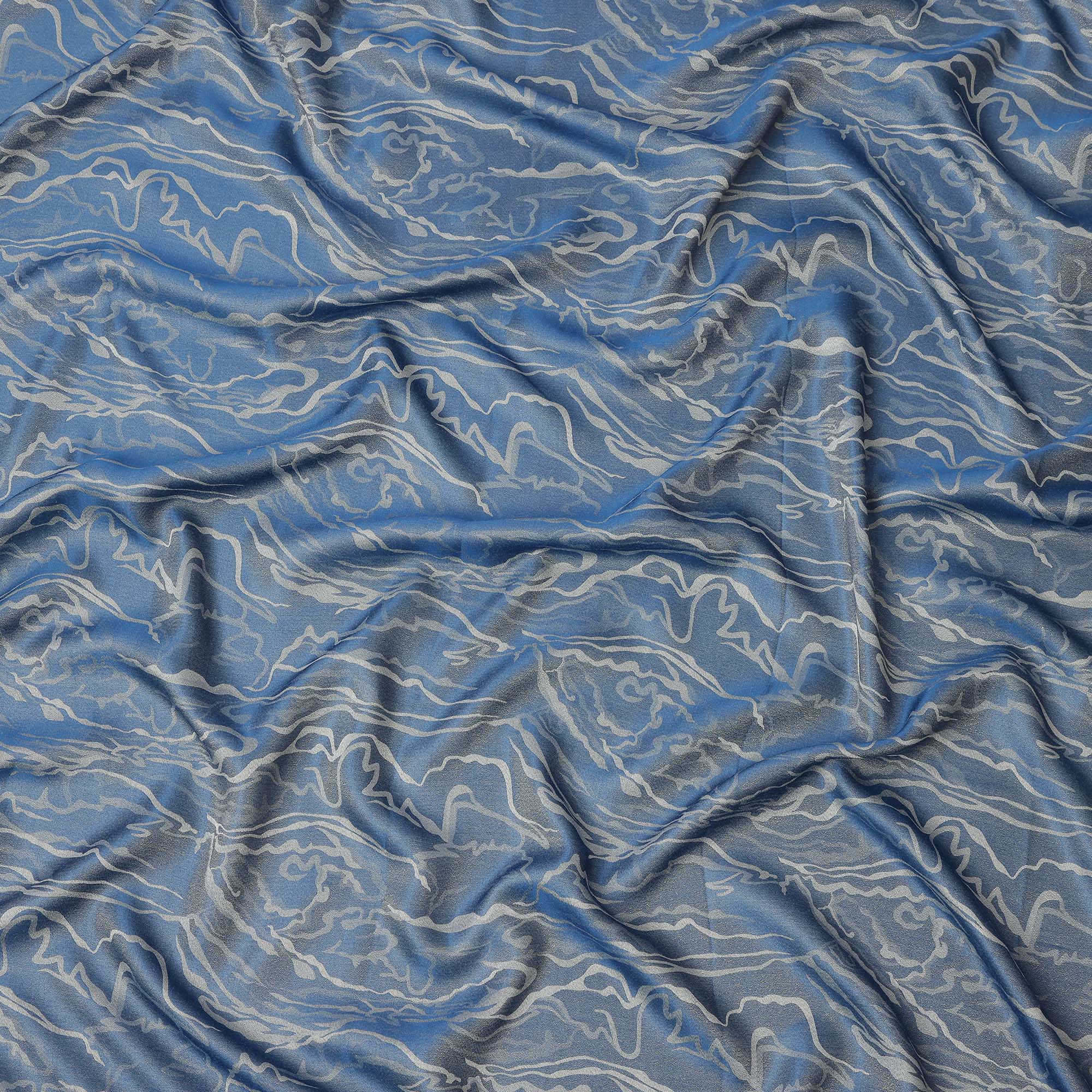 Blue Pure Silk Satin Fabric with Abstract Metallic Design, 140 Cms Width, South Korea-D25351