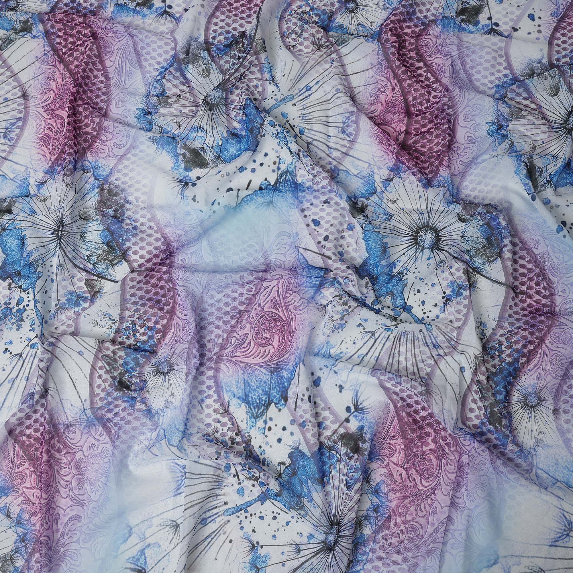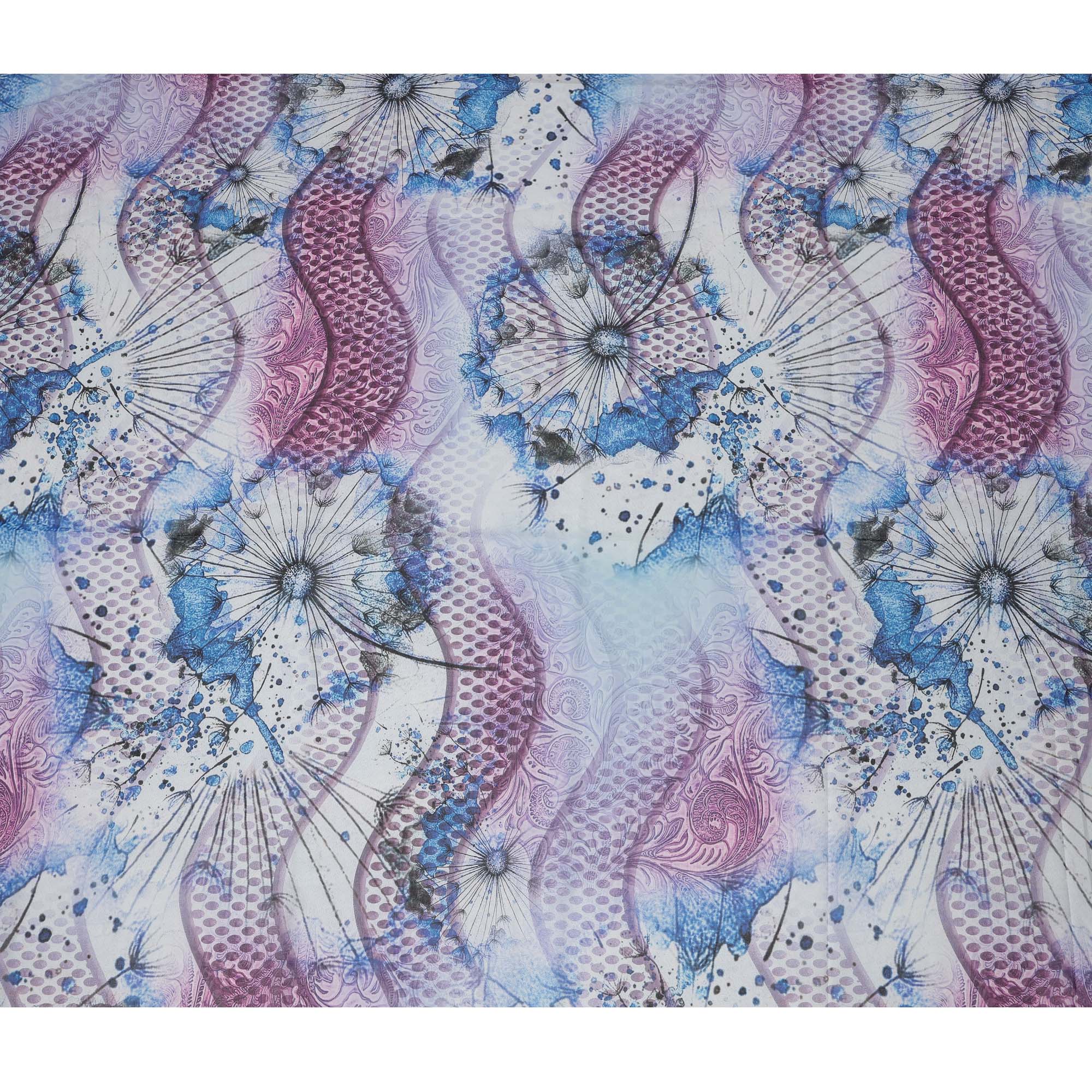 Blue & Purple Abstract Floral Printed Somali Cotton Voile Dirac Fabric, 3.5 Mtrs Piece, 140 cm Width, Made in India-D26665