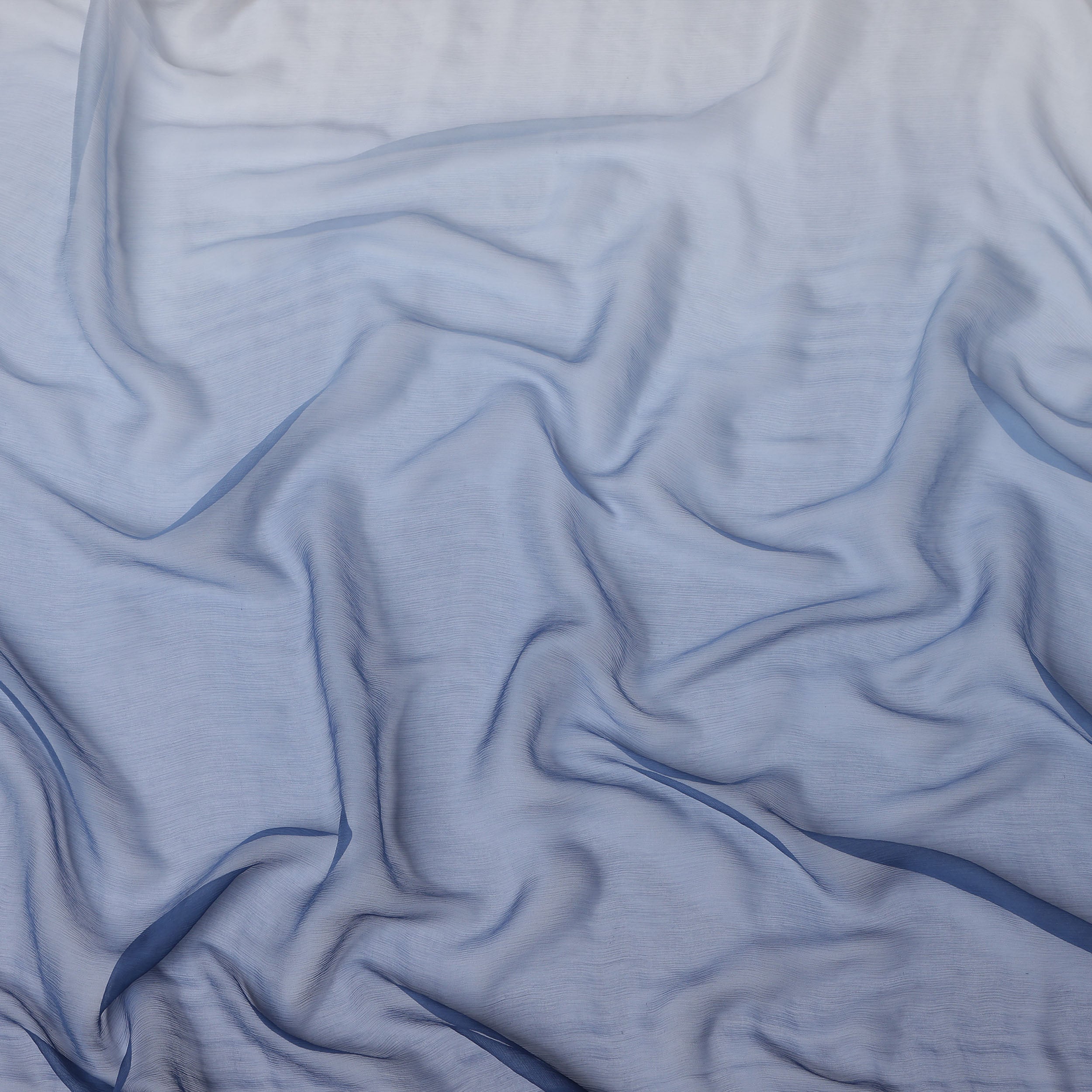 Blue to Navy Ombre Wrinkle Silk Chiffon Fabric with Sheer Texture and Luxurious Flow, 110 Cms Width, Made in South Korea-D25916