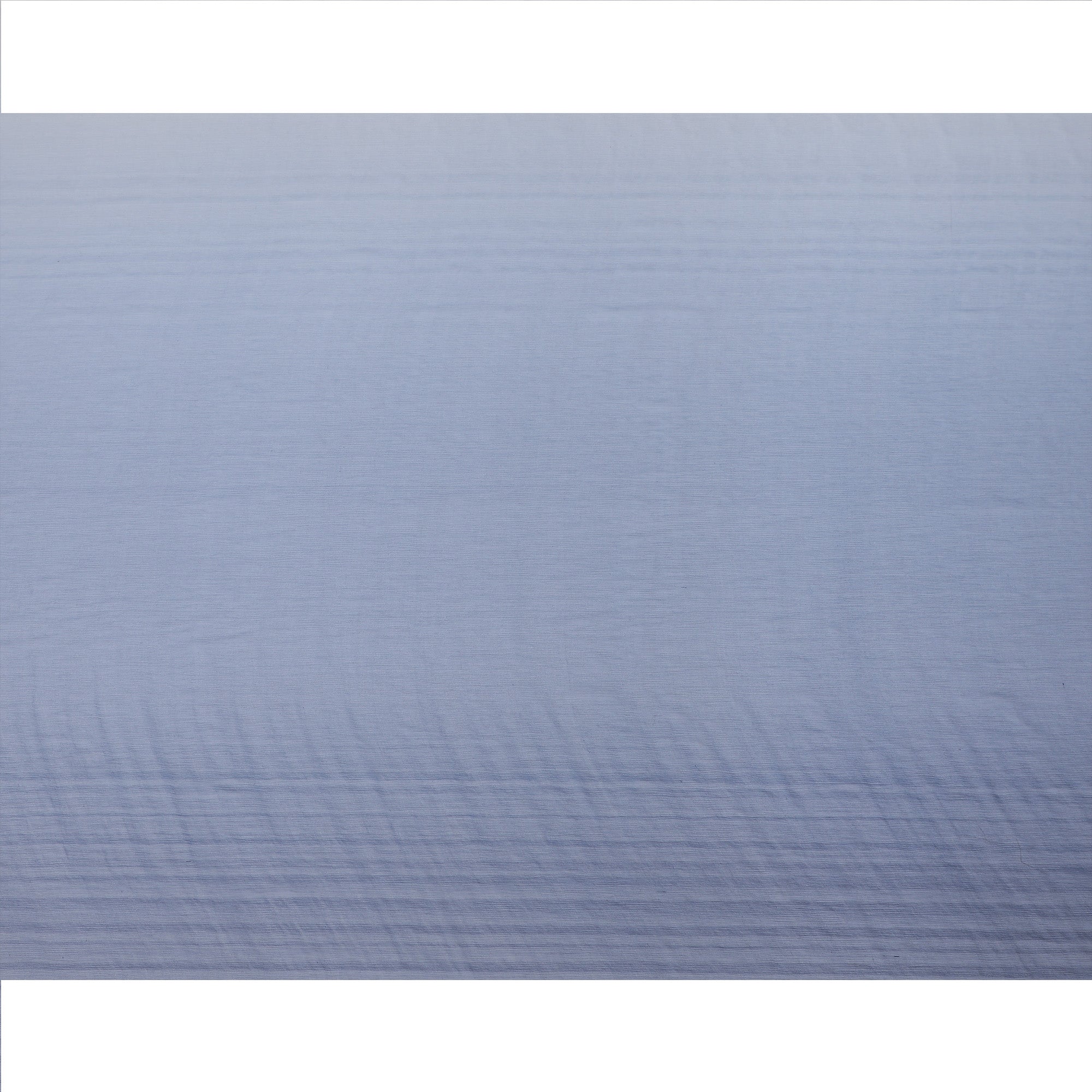 This blue to navy ombre wrinkle silk chiffon fabric from South Korea captures timeless elegance and modern sophistication through its smooth gradient and delicate texture. The ombre design flows effortlessly from a serene light blue to a deep navy tone, creating a captivating transition that enhances the natural beauty of silk chiffon. Crafted with precision, the fabric features a subtle wrinkle texture that adds depth and dimension while maintaining a soft, airy, and fluid drape. Its lightweight and sheer quality makes it ideal for sarees, evening gowns, dupattas, scarves, and couture fashion ensembles. The craftsmanship reflects South Korea’s excellence in silk weaving and dyeing, ensuring a refined finish with consistent color gradation. With a width of 110 cms, this fabric offers versatility for both structured and flowing silhouettes. Combining comfort, elegance, and artistry, this ombre wrinkle silk chiffon fabric embodies understated luxury and is perfect for high-end fashion design.