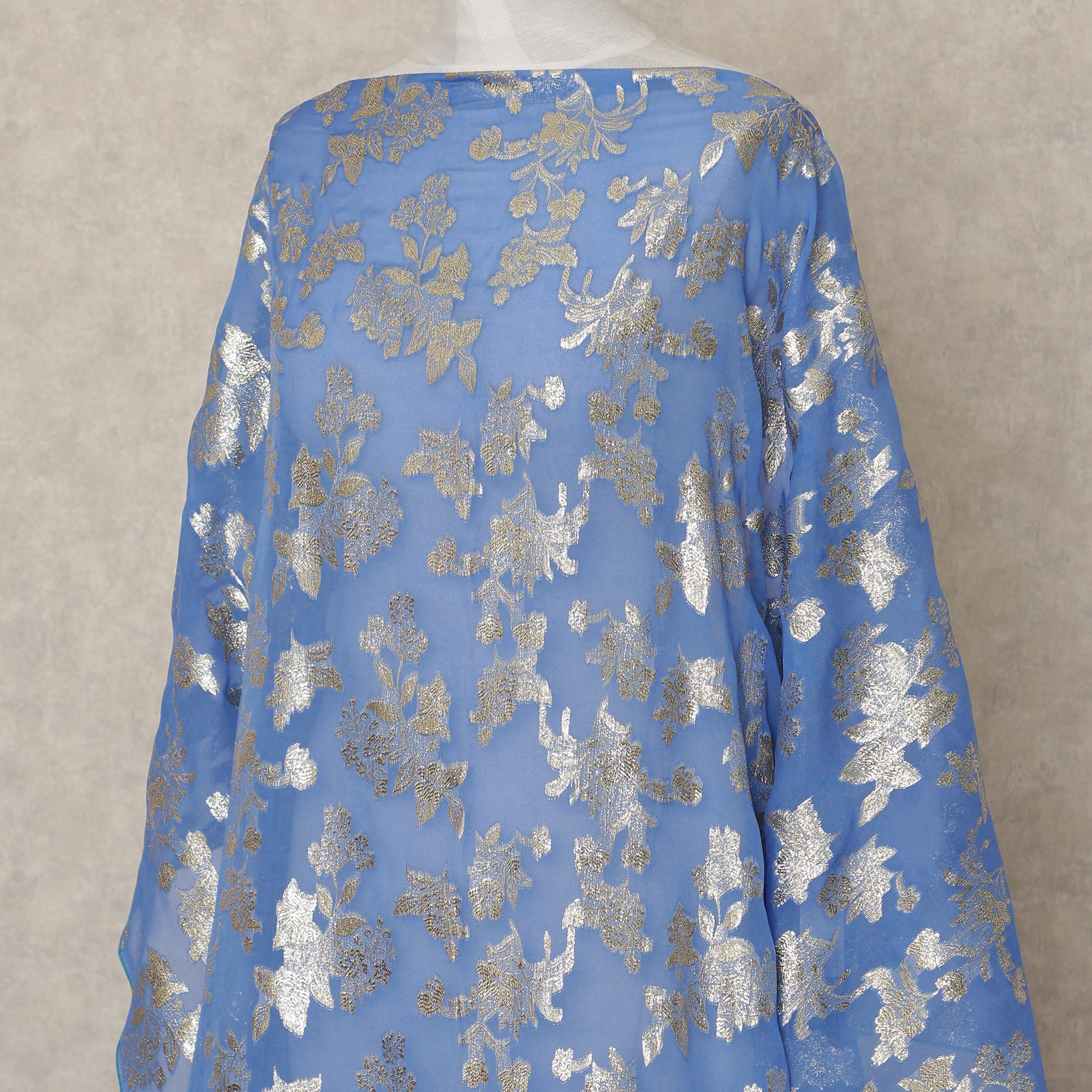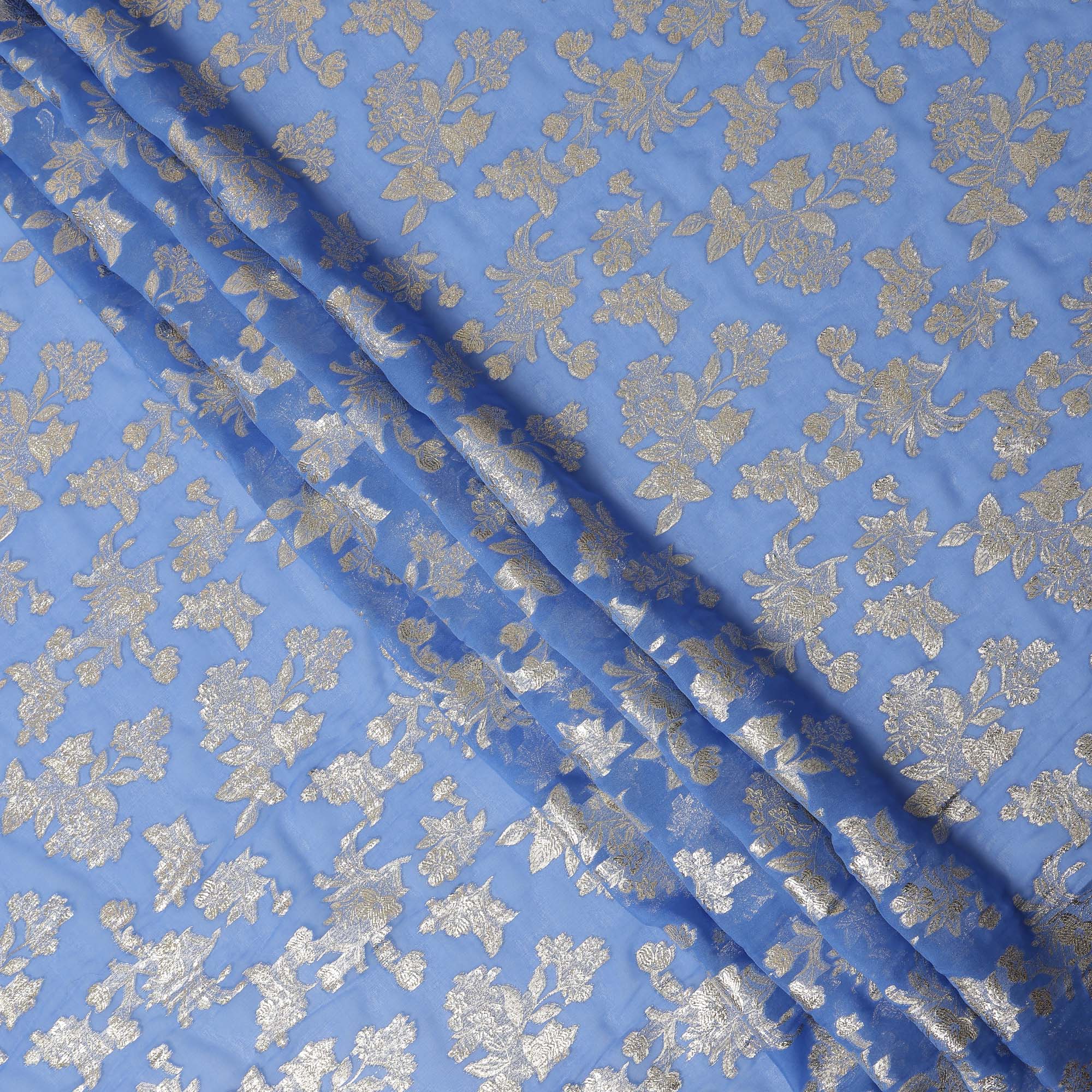 Blue Traditional Somali Silk Chiffon Dirac Fabric with Metallic Lurex, 3.5 Mtrs Piece, Width 140 Cms, Made in South Korea-D26498