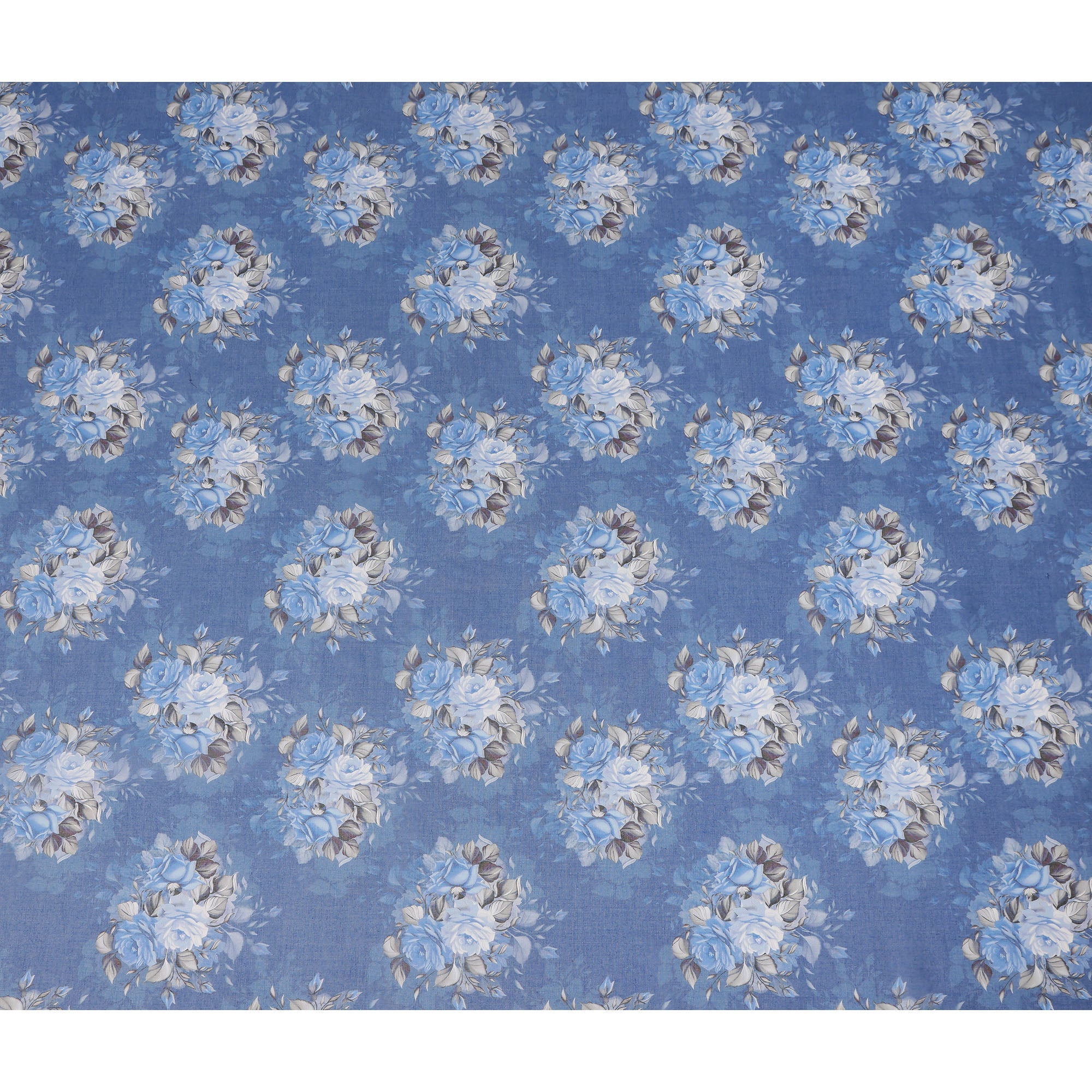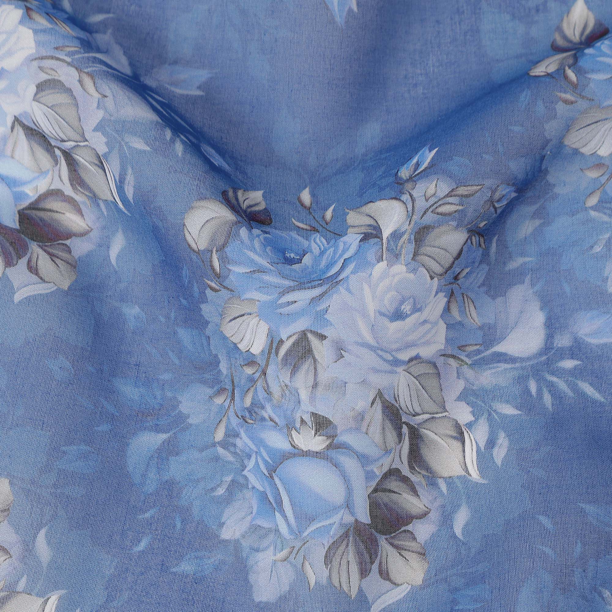 Blue Vintage Floral Rose Bouquet Printed Cotton Voile Fabric 150 Cms Width Lightweight Soft Dressmaking Craft Material India-D28045