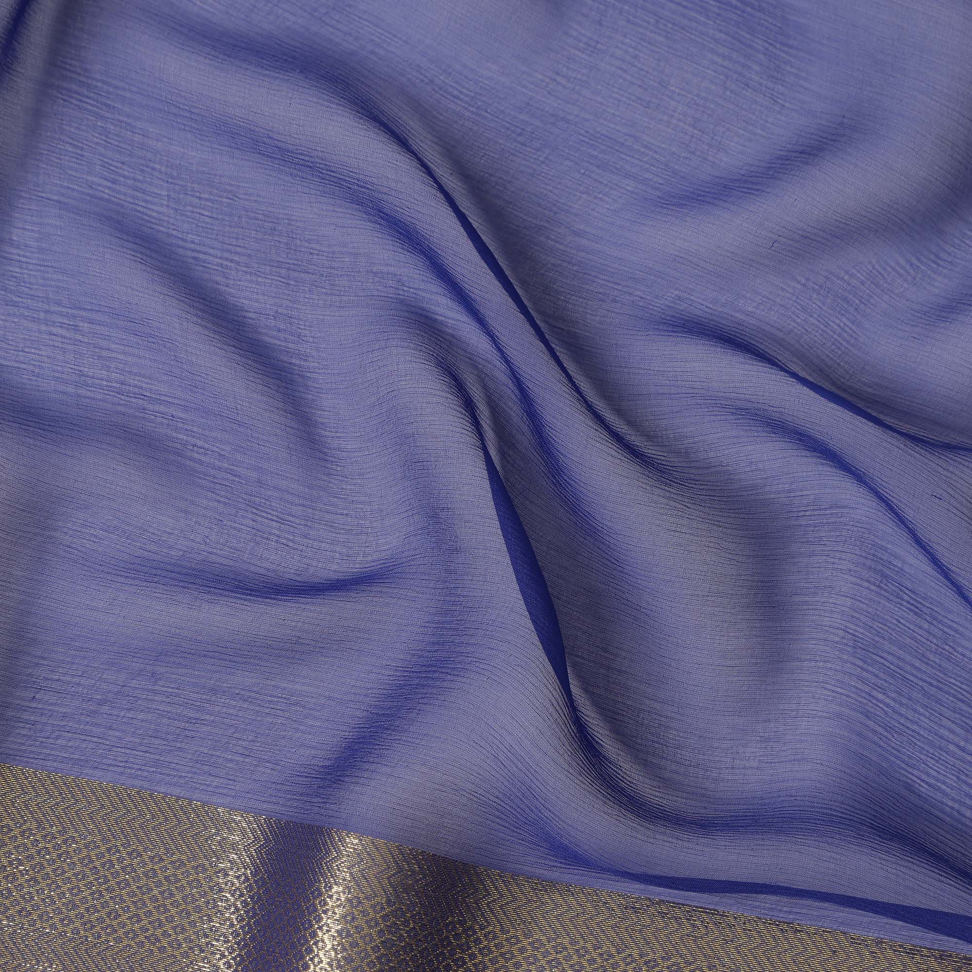 Blue Wrinkle Silk Chiffon Fabric with Golden Border Stripe Lightweight Sheer Textured Fabric for Sarees Dresses Dupattas and Crafts 110 Cms Wide South Korea Origin-D27661