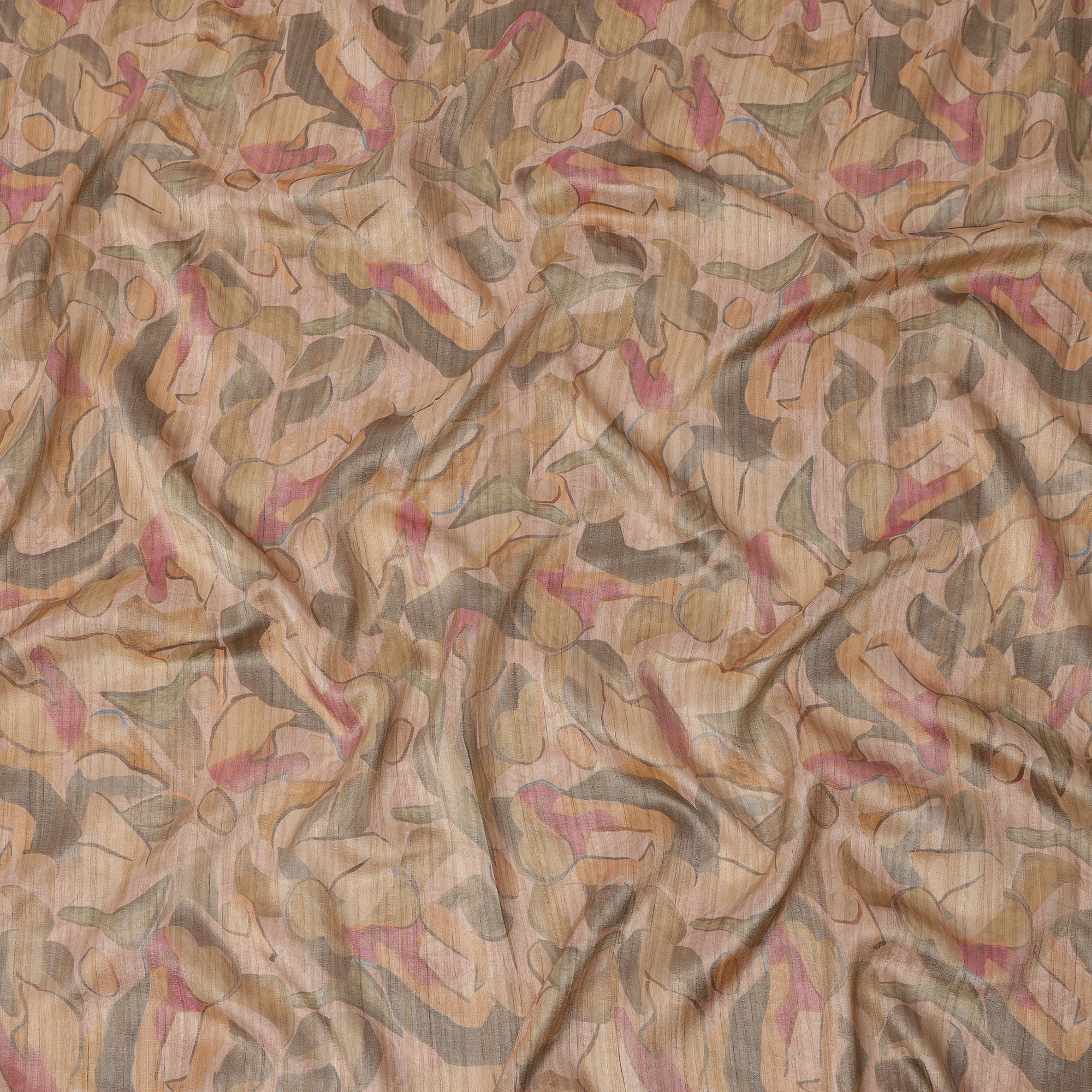 Blush beige base with abstract print in pink, olive, and charcoal tones