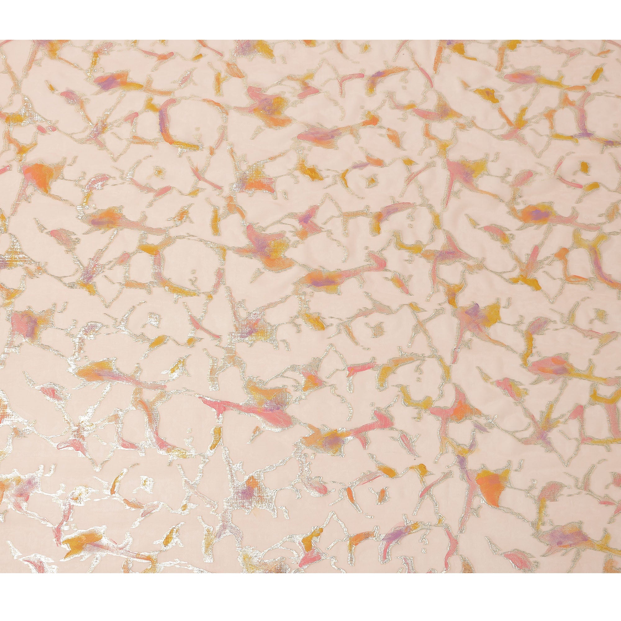 Premium blush peach pure silk chiffon fabric with abstract metallic hand print.