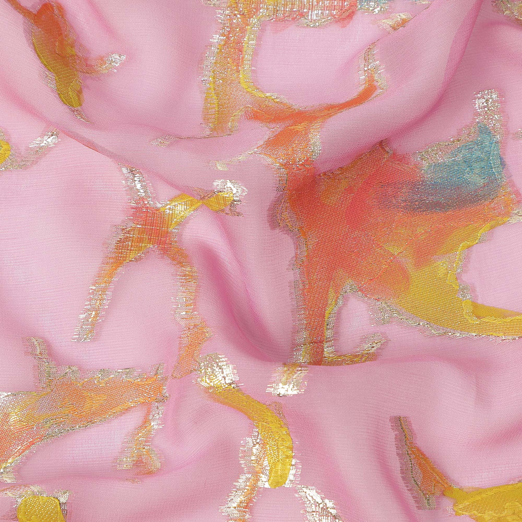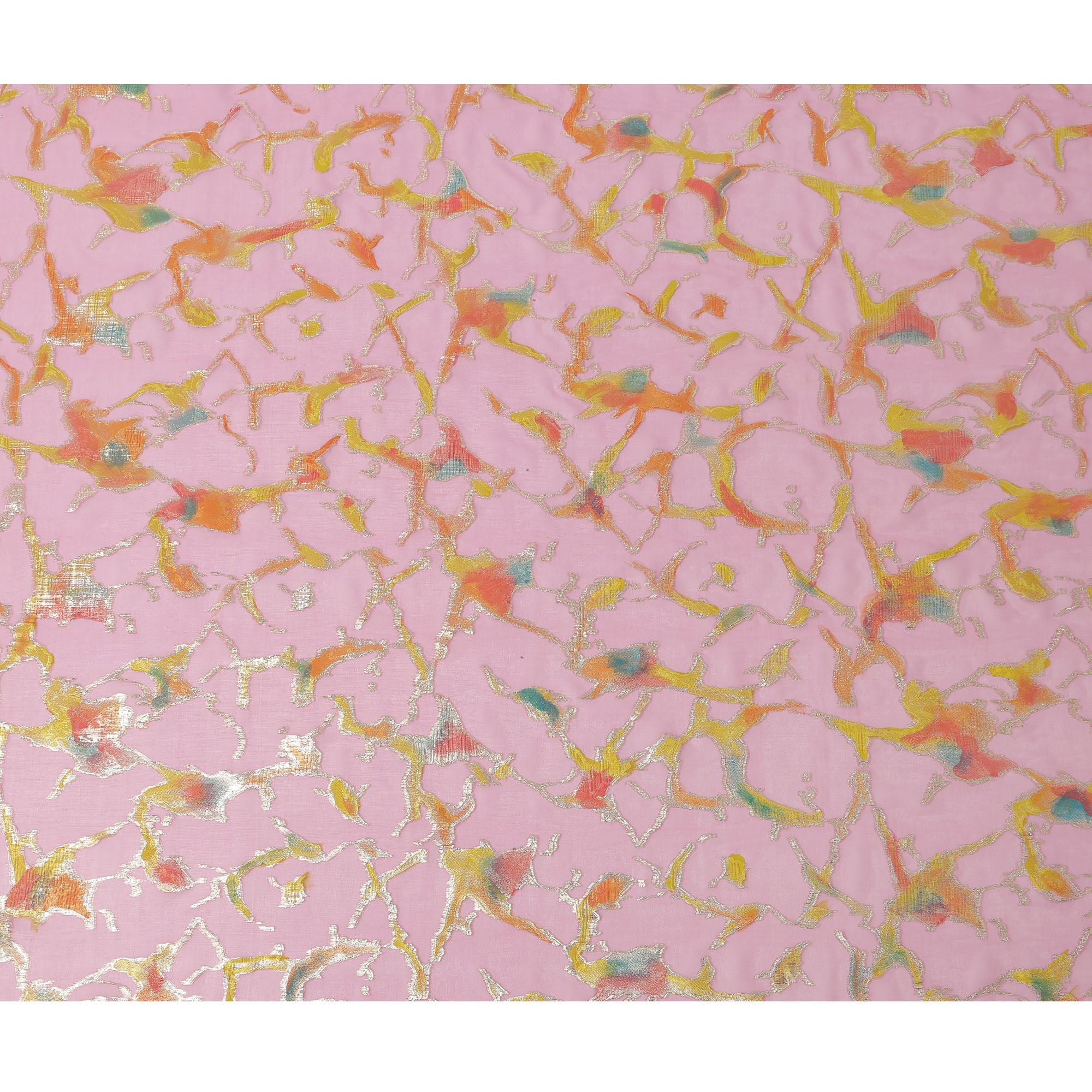Blush Pink Abstract Metallic Hand Print Pure Silk Chiffon Fabric, 110 Cms, South Korea-D26919