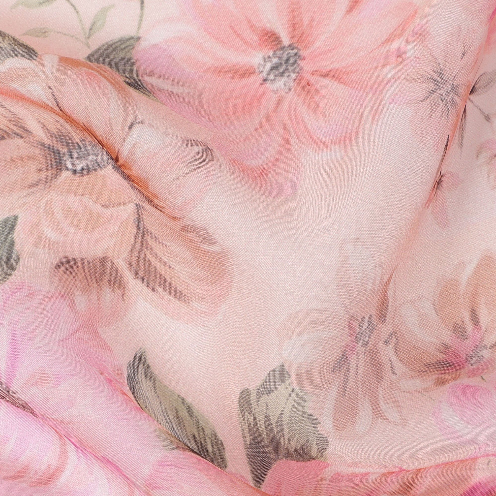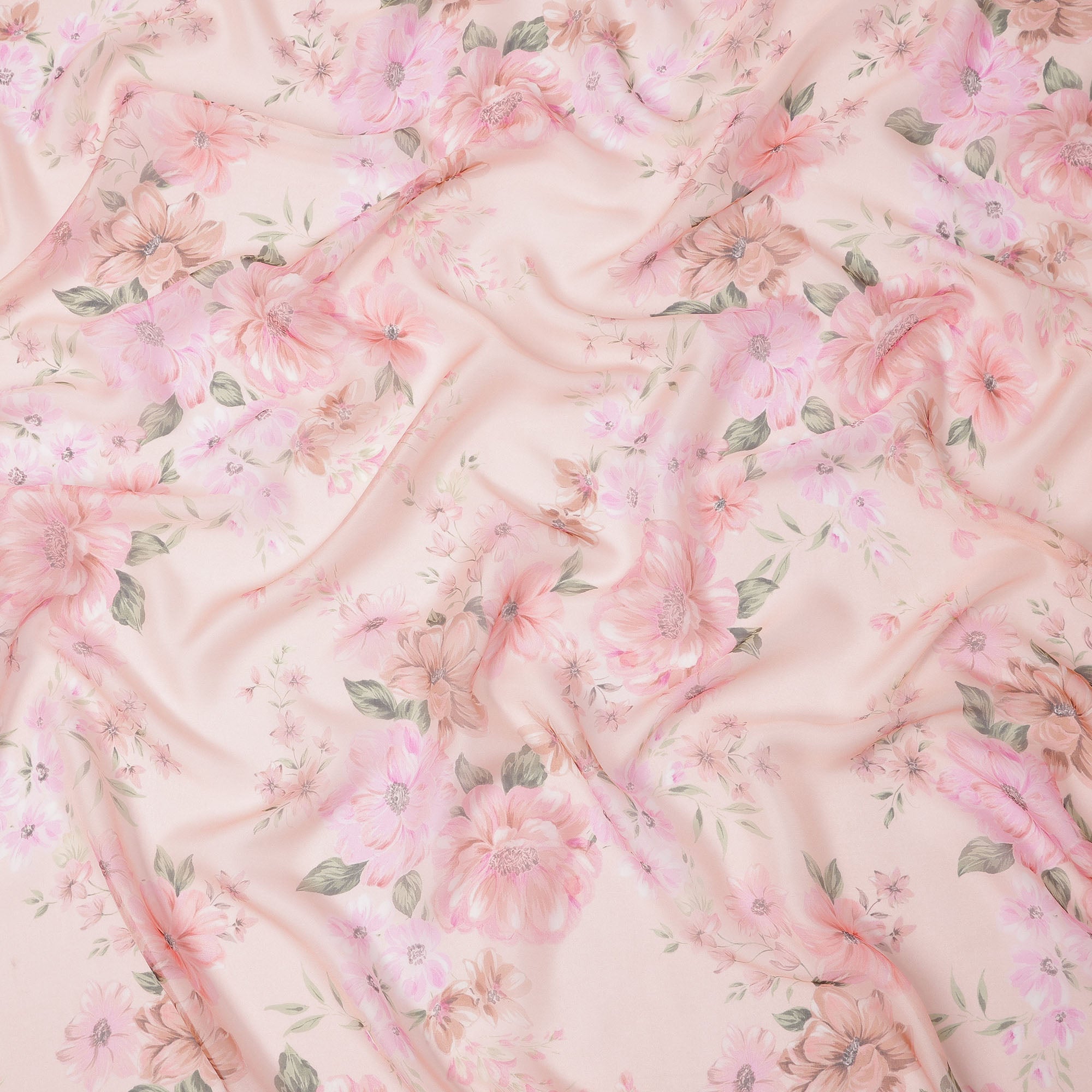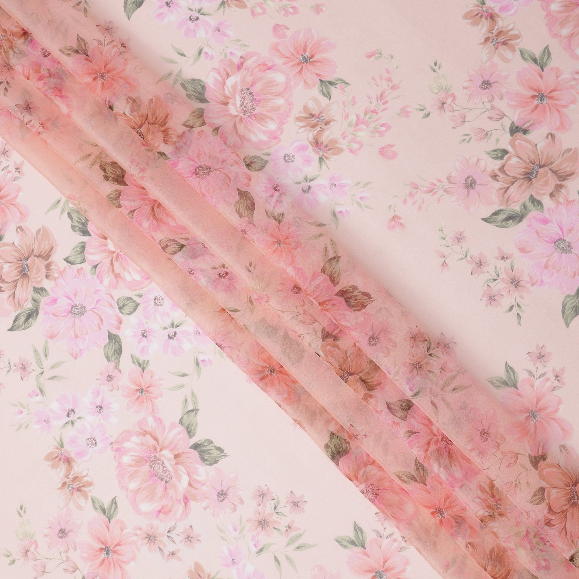 Blush Pink Base Bloom Cluster Floral Printed Pure Silk Chiffon Fabric, 110 Cms Width, Made in South Korea-D24012