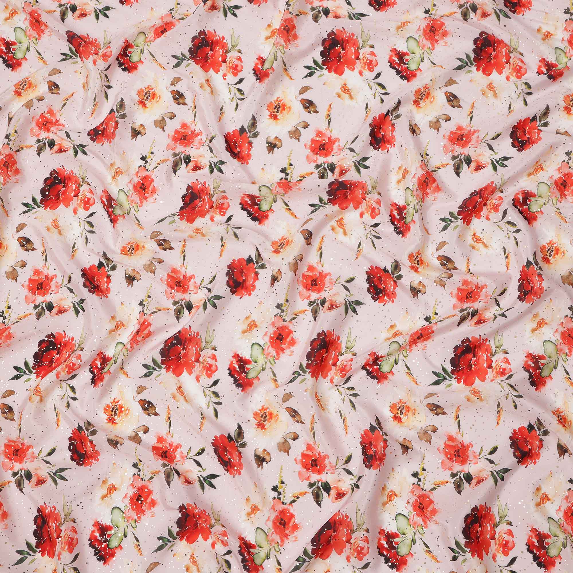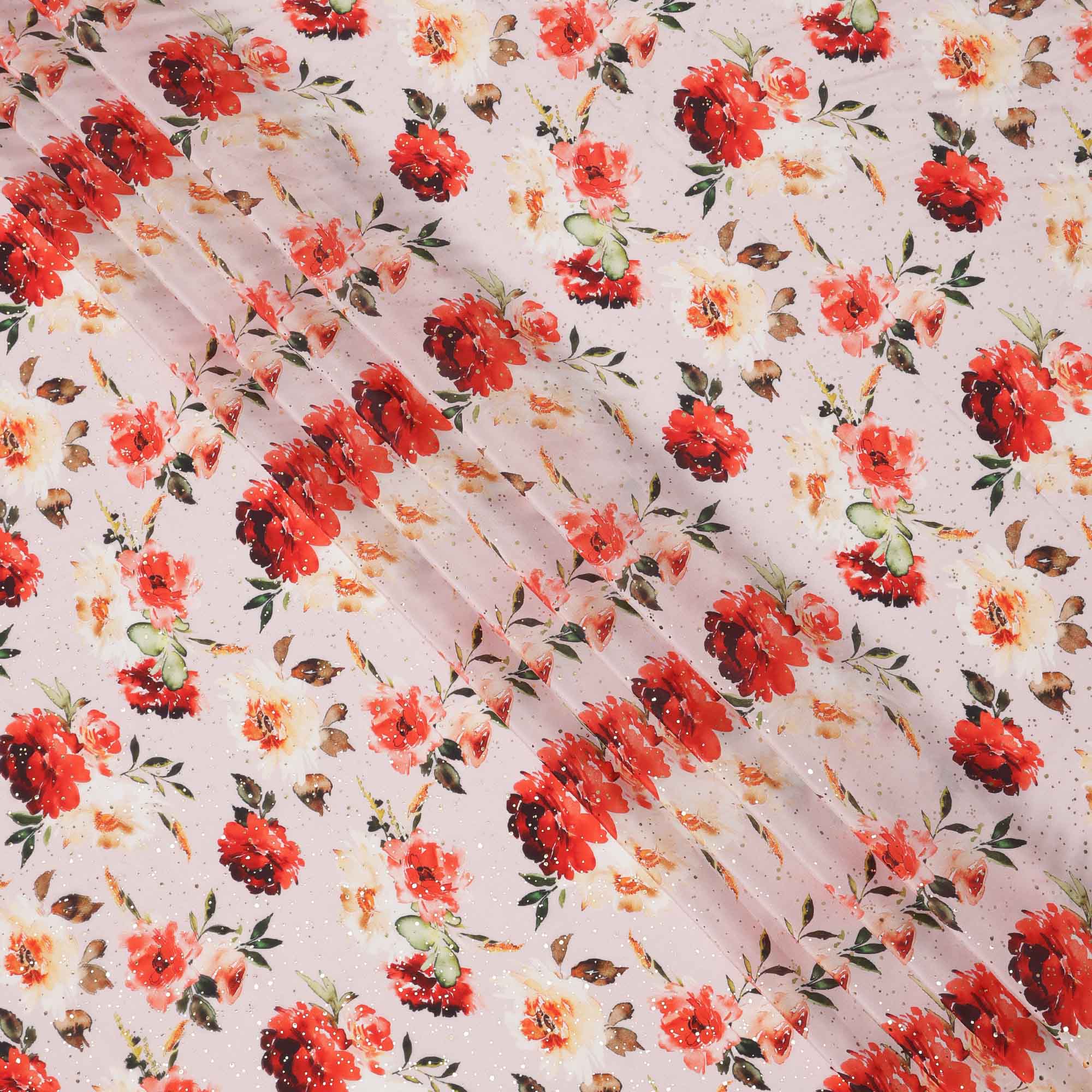 Blush Pink Base Red Floral Watercolor Digital Print Viscose Crepe Fabric, 110 Cms Width, Made in India-D23632