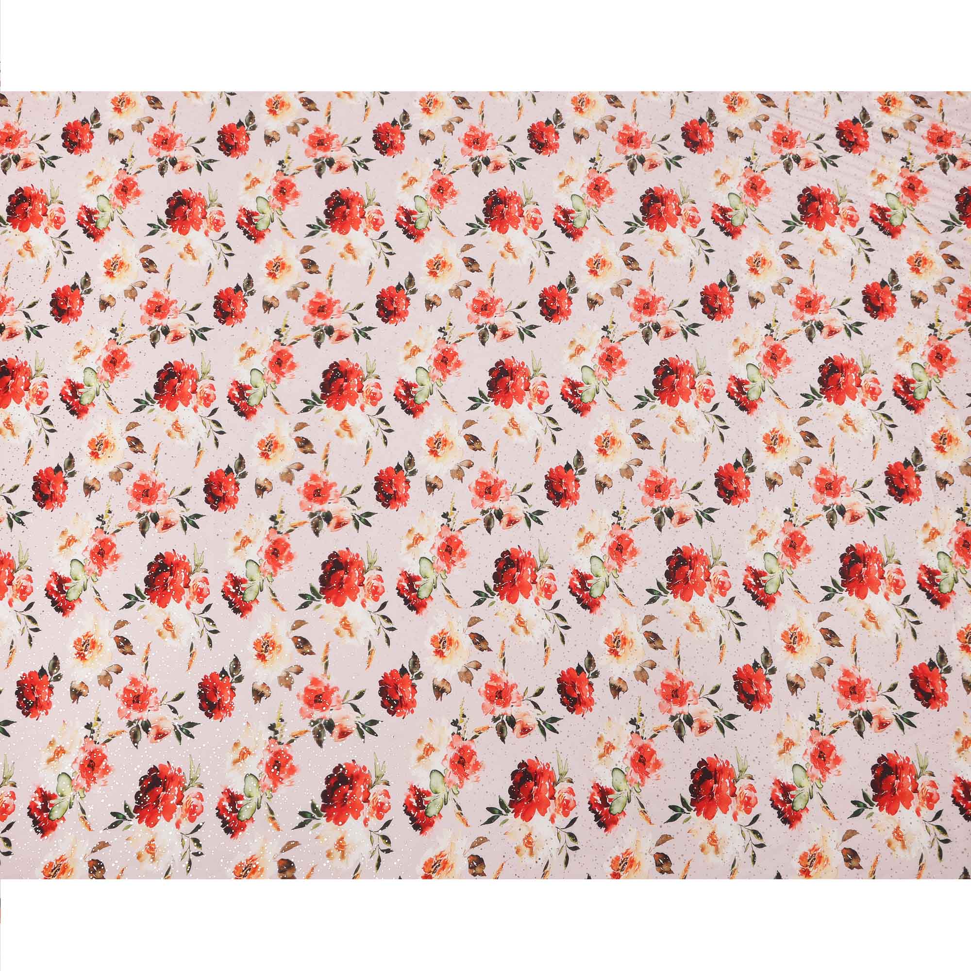 Blush pink base highlighted with vivid red floral watercolor digital print