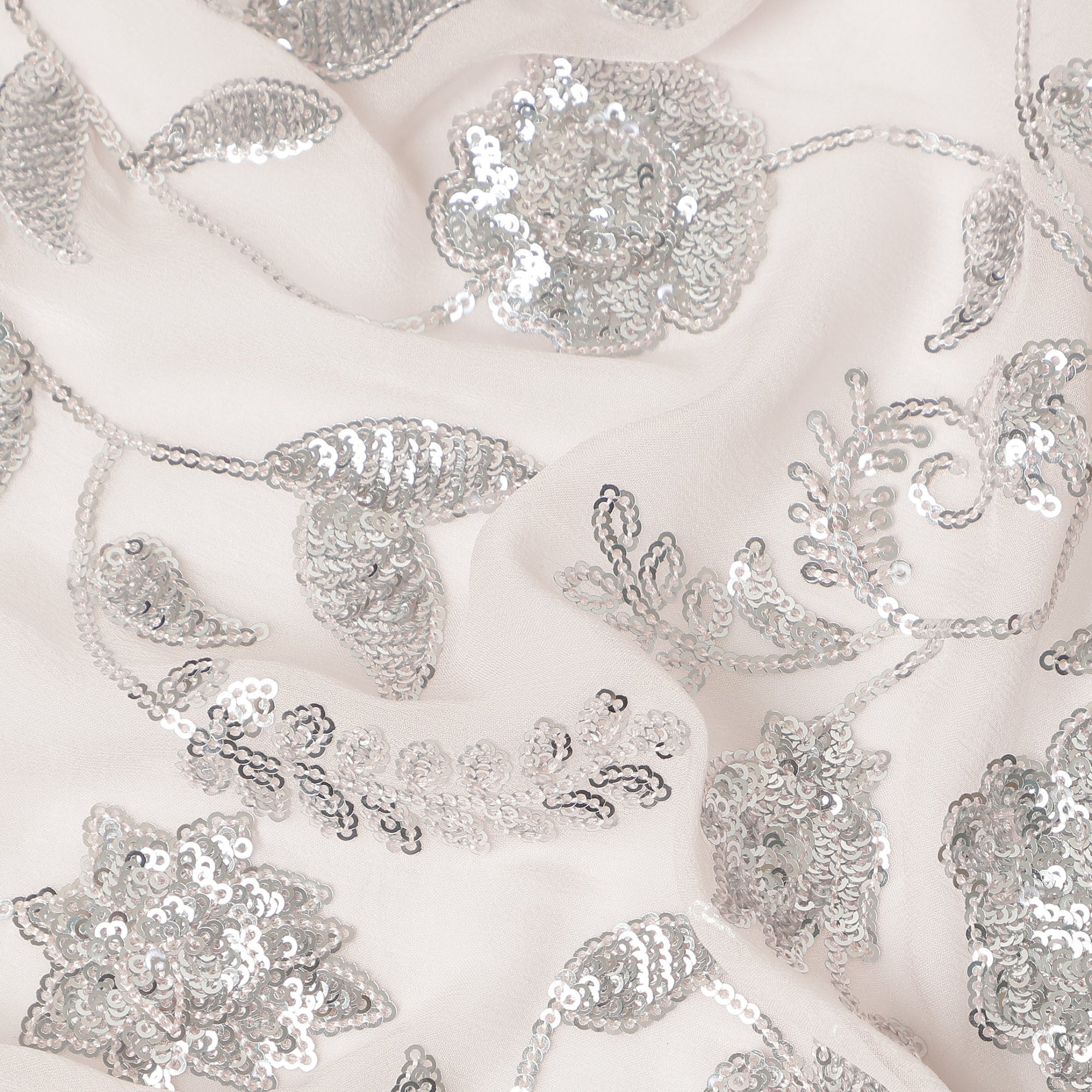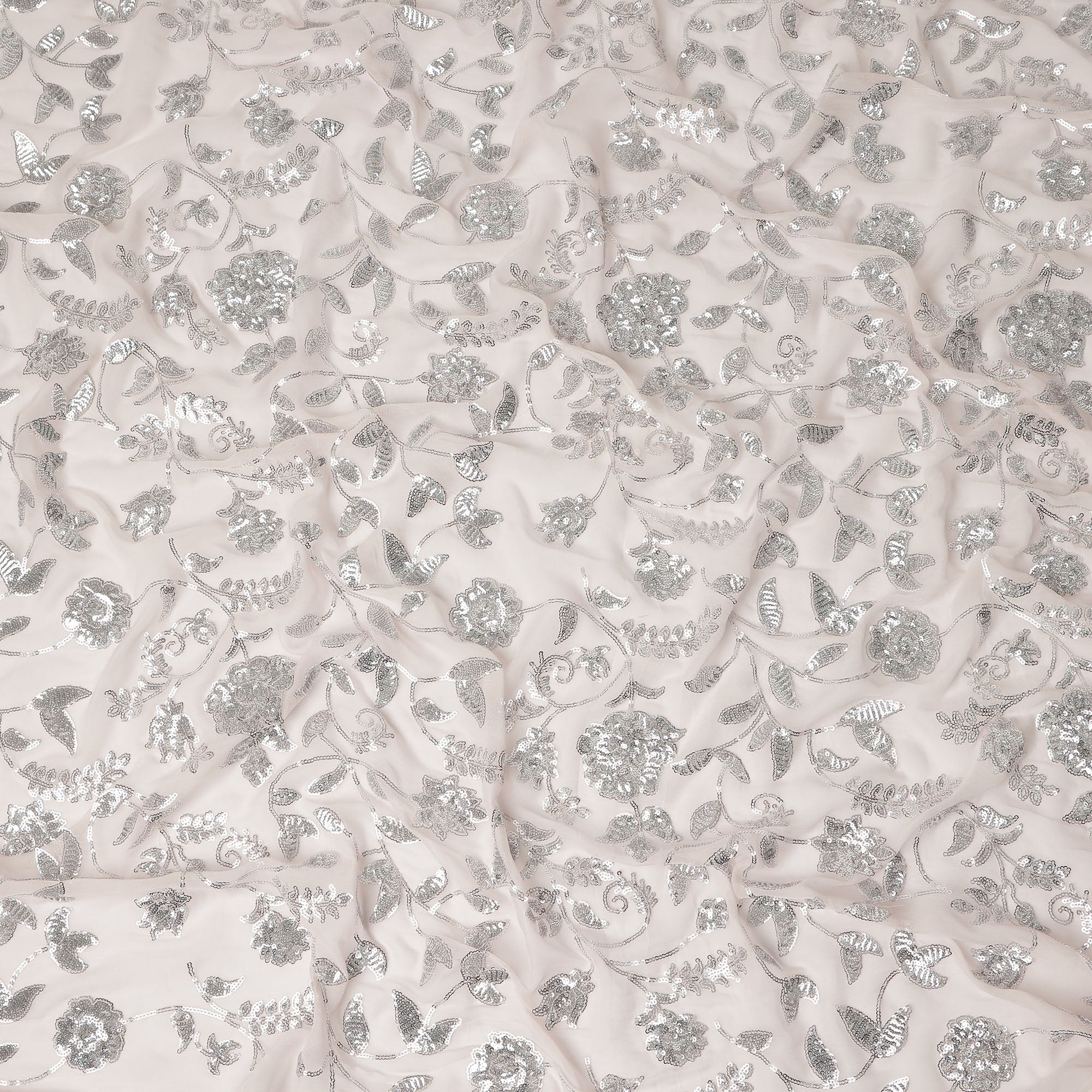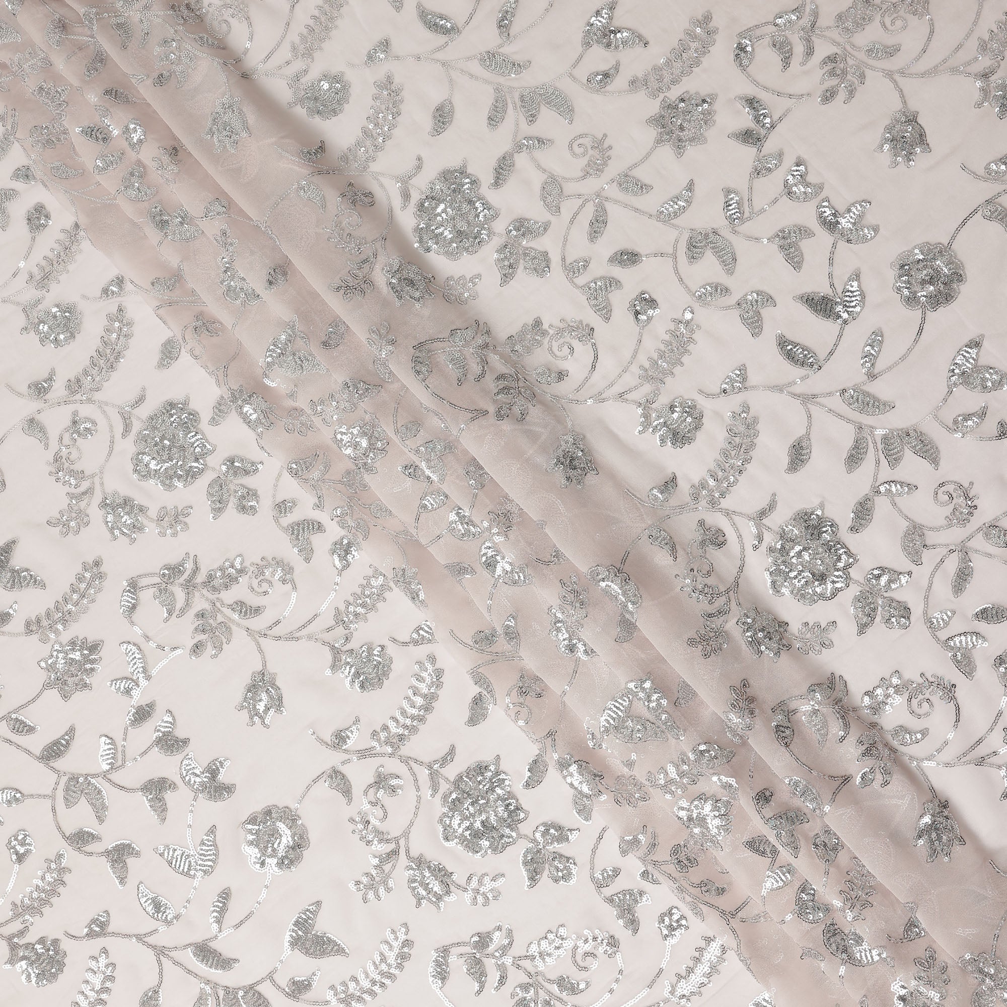 Soft blush pink base enriched with elegant floral sequin embroidery.