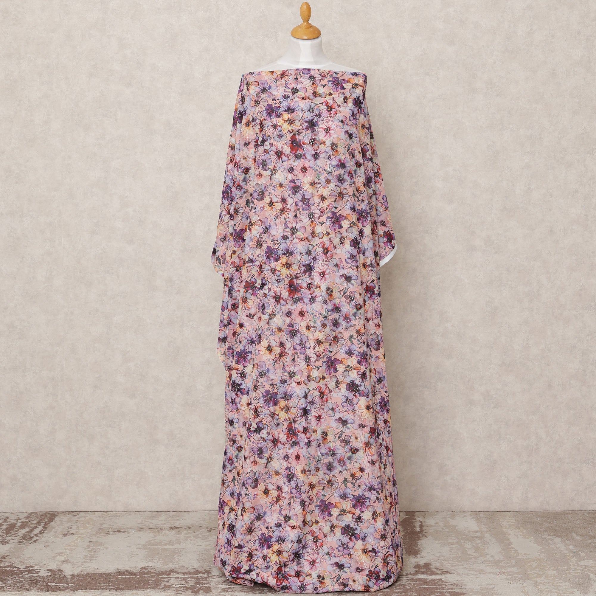 Add a touch of delicate elegance to your ethnic collection with this blush pink Somali cotton voile printed dirac fabric, beautifully adorned with a vibrant array of floral prints in purple, violet, mustard, and coral tones that bloom gracefully across the surface. Crafted in India, this 3.5-meter fabric is made from soft, breathable cotton voile known for its lightweight texture and semi-sheer finish, making it ideal for traditional dirac wear, abayas, hijabs, or modest festive attire. The gentle drape and refined feel of the fabric ensure both comfort and elegance, while the all-over floral design adds a lively yet graceful aesthetic. With a width of 140 cm, this fabric provides ample space for creative tailoring, whether you're styling for everyday charm or cultural occasions. Buy online now to experience the perfect fusion of Indian artistry and Somali tradition in every thread. Shop online for effortlessly stylish and culturally rooted printed cotton voile.