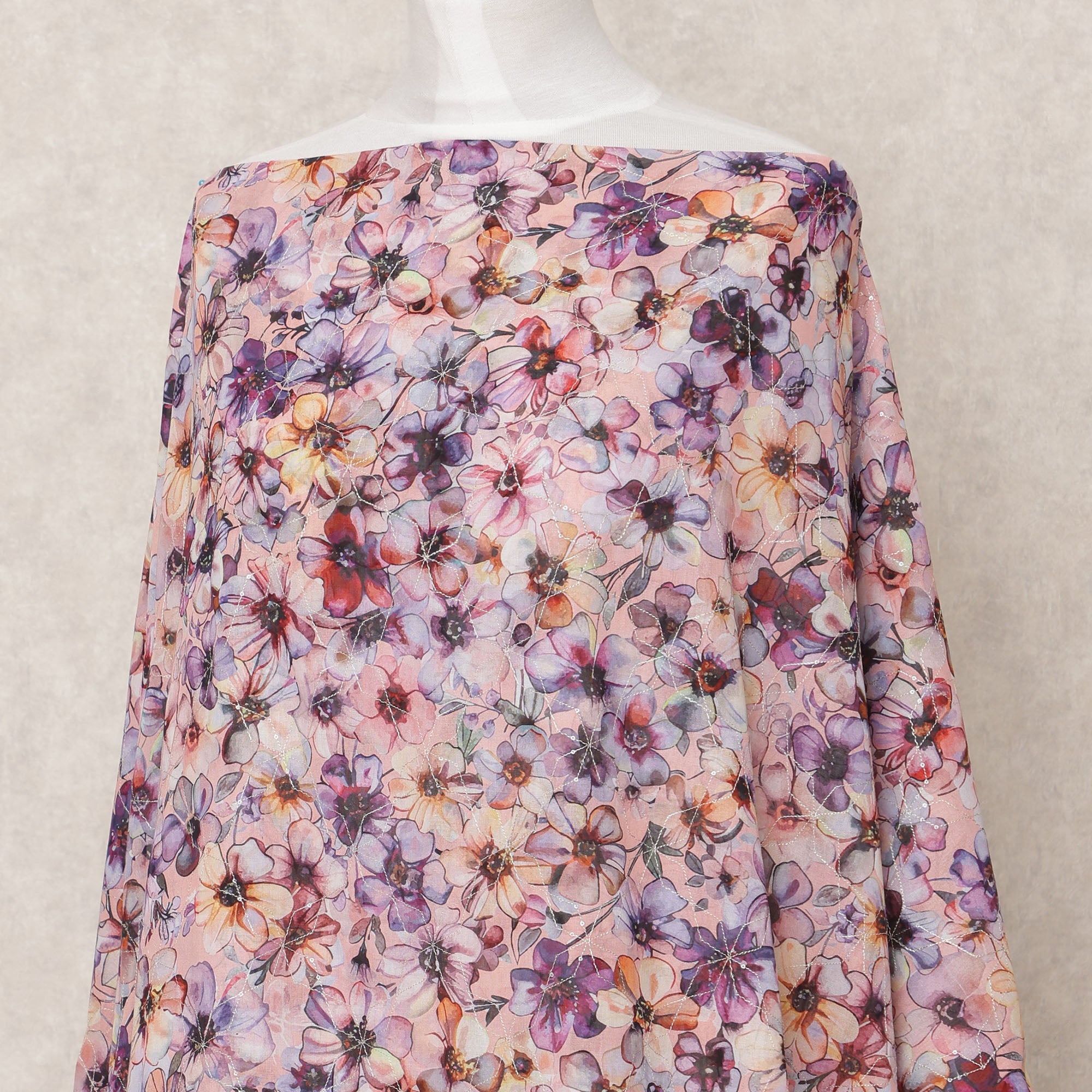 Blush Pink Multicolor Floral Printed Somali Cotton Voile Dirac Fabric, 3.5 Mtrs, Width 140 Cms, Made in India-D24513
