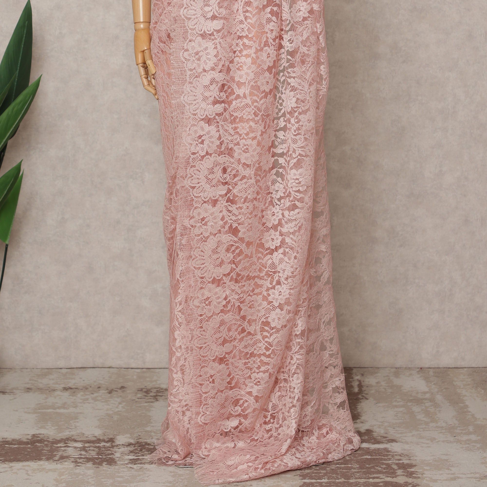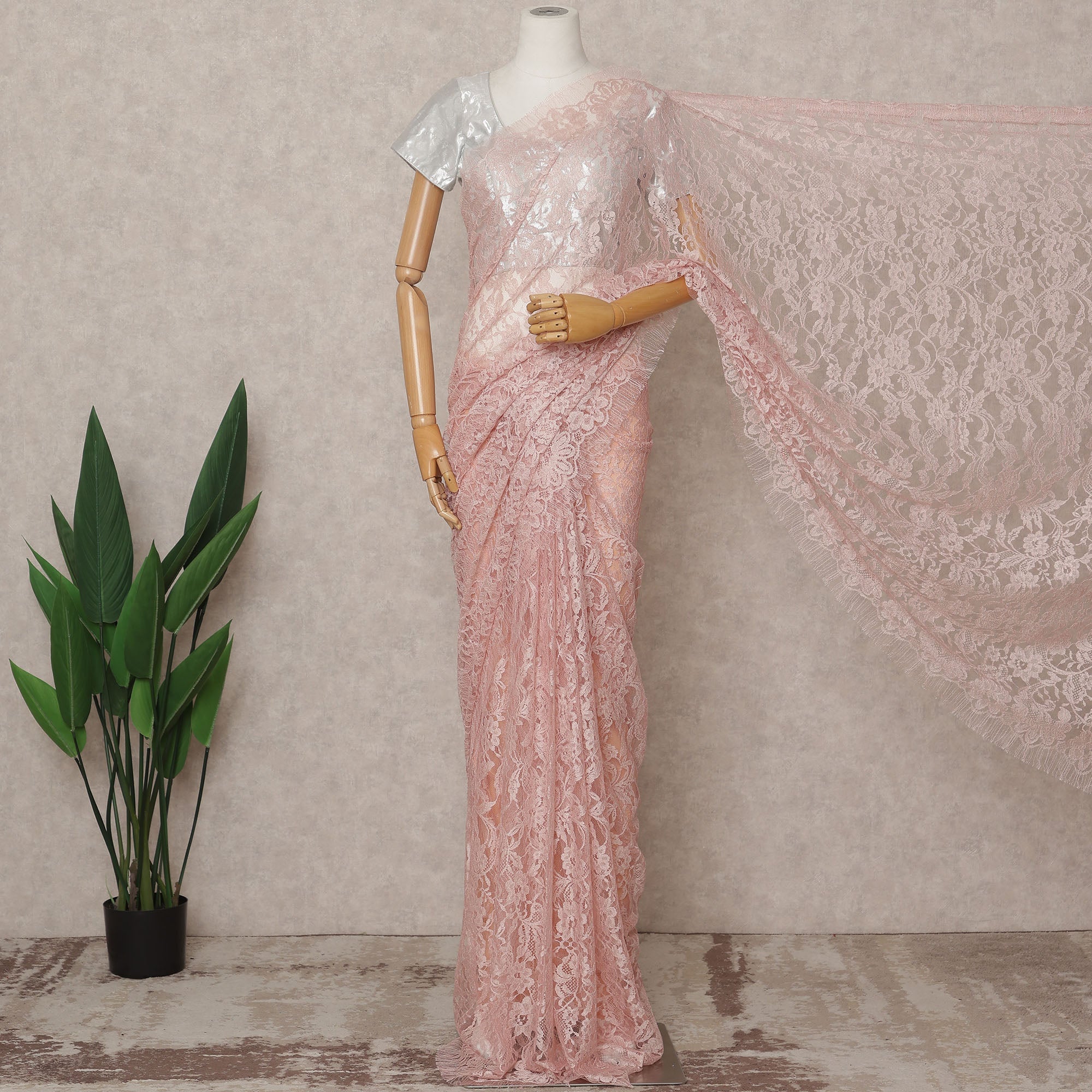 Blush Pink Premium French Chantilly Lace Saree Fabric 5.5 Mtrs with 110 Cms Width – Imported from France-D25640