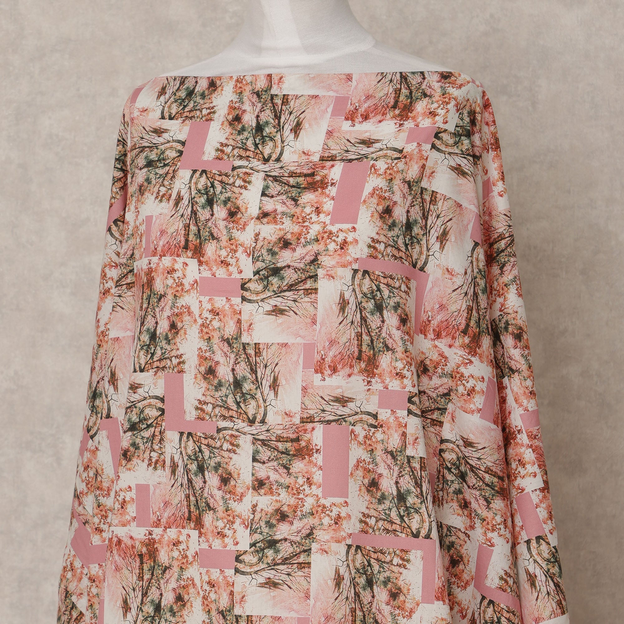 Blush Pink Somali Cotton Voile Printed Dirac Fabric with Abstract Tree Motif, 3.5 Mtrs, Width 140 Cms, Made in India-D24057
