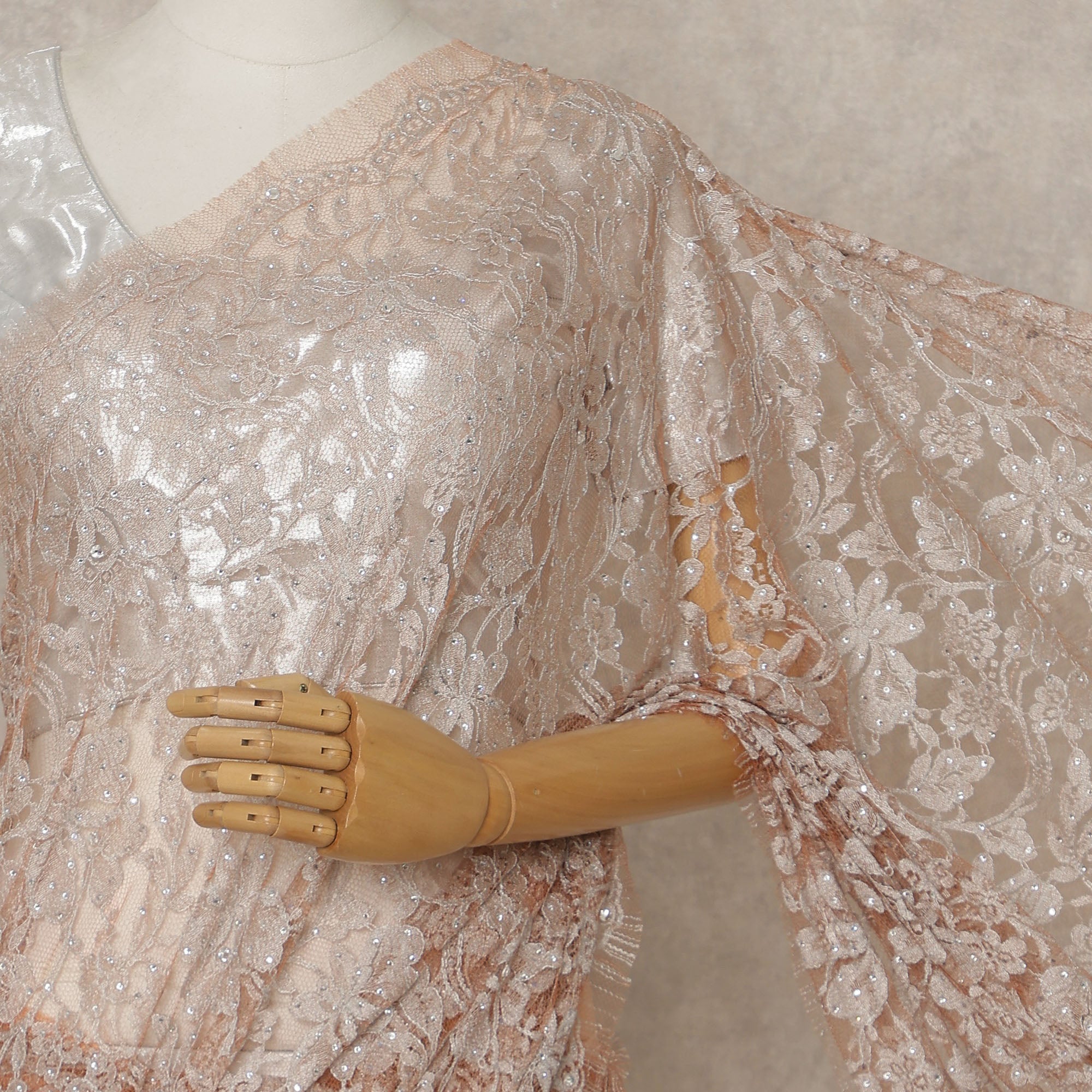 Premium French Chantilly lace in blush rose tones