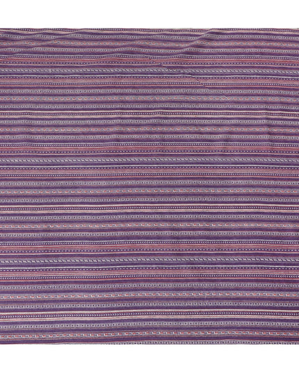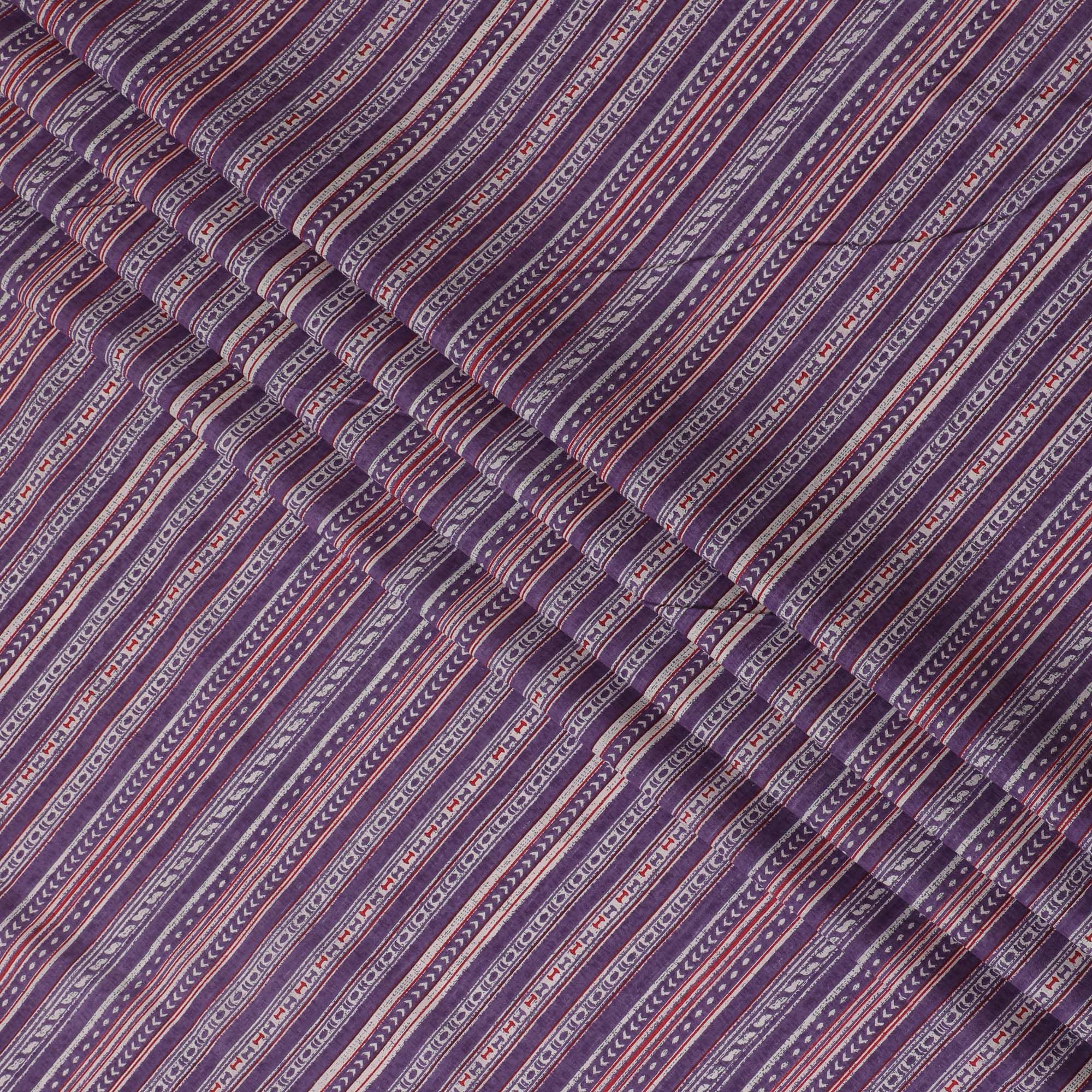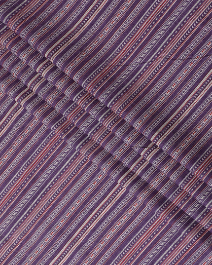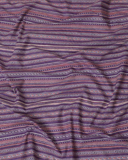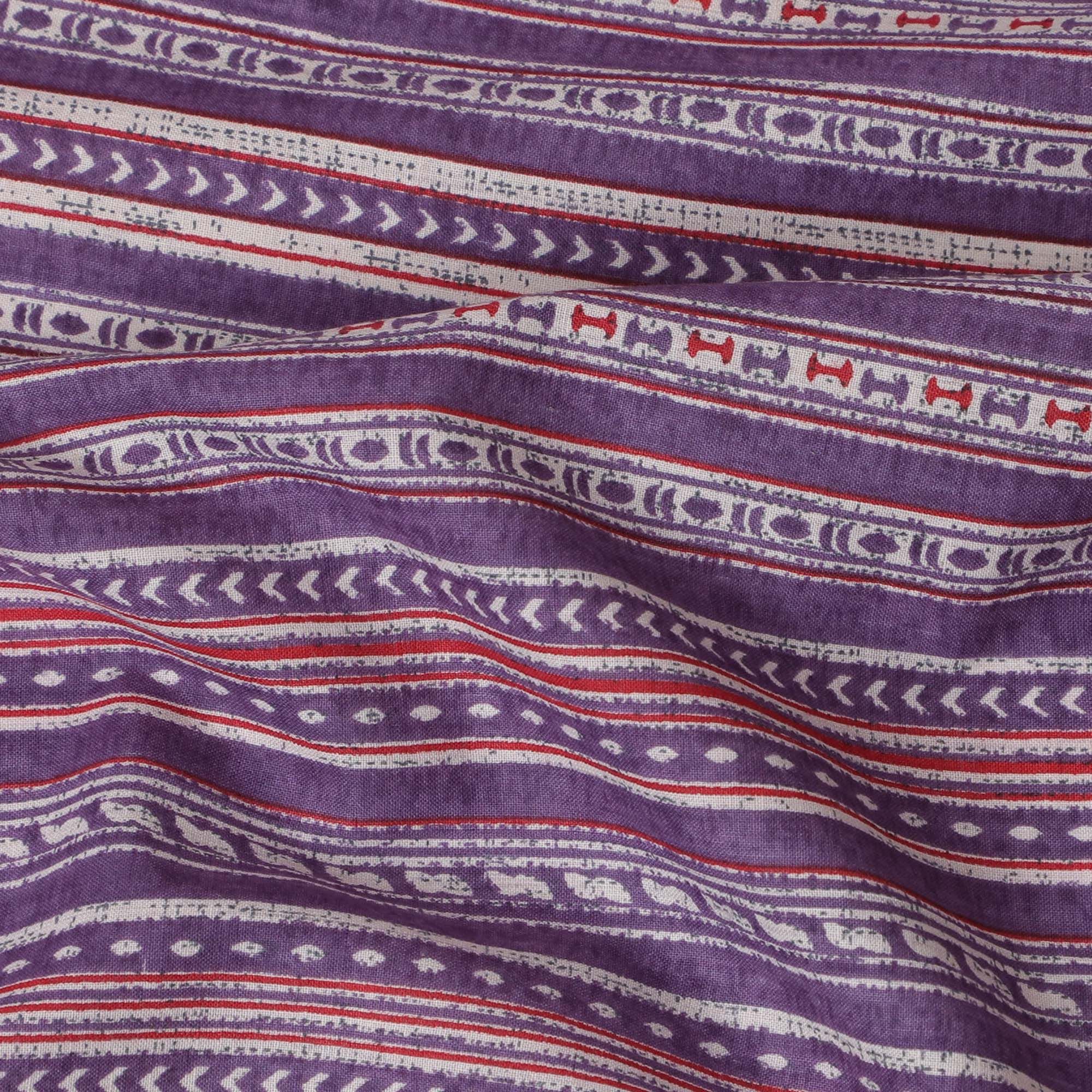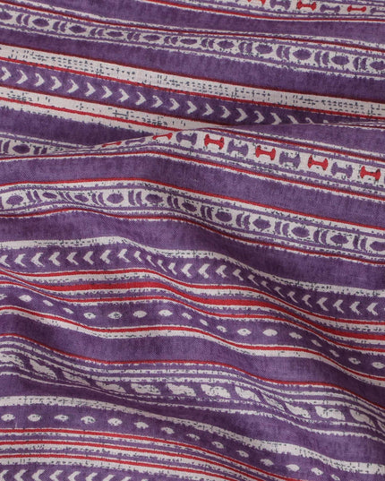 Bohemian Rhapsody Printed Cotton Lawn Fabric - Vibrant Purple Stripes & Tribal Motifs, 110cm Width-D18758