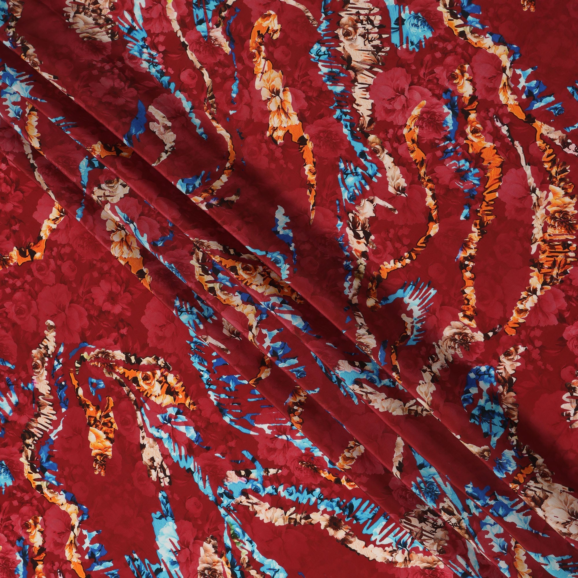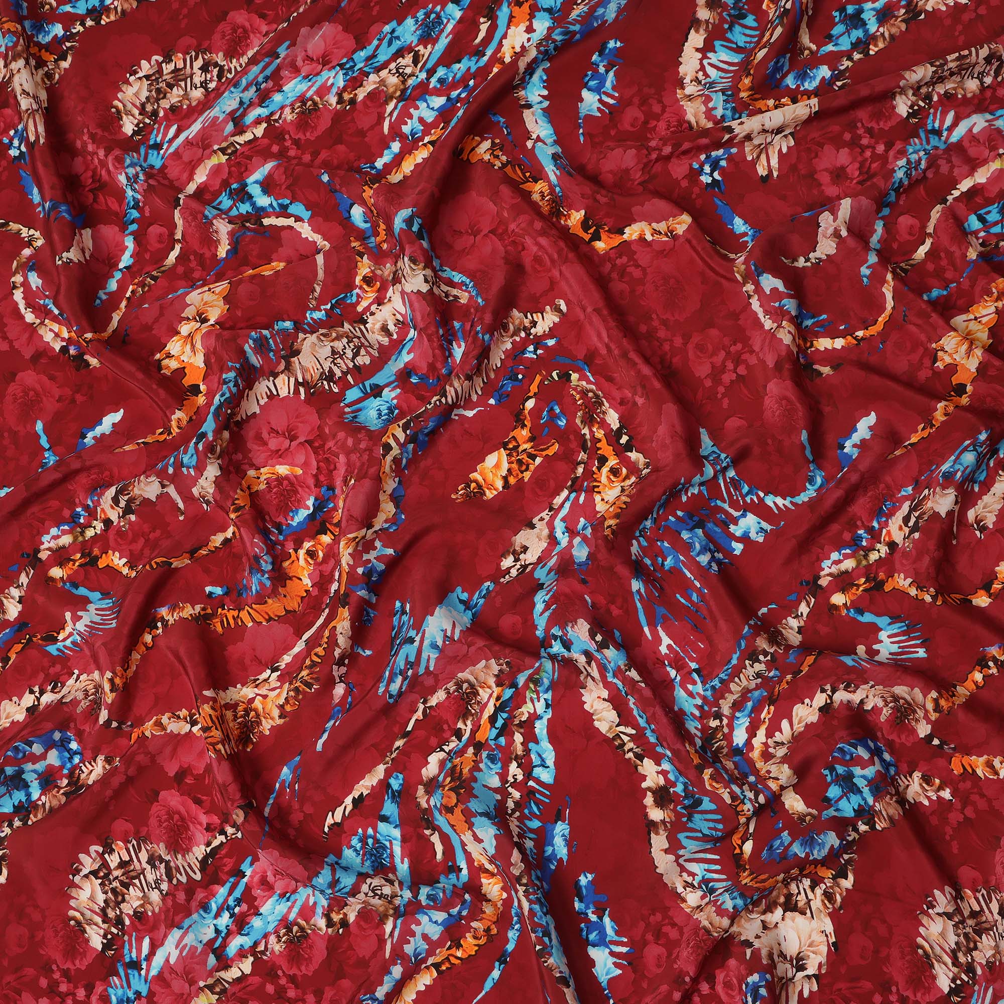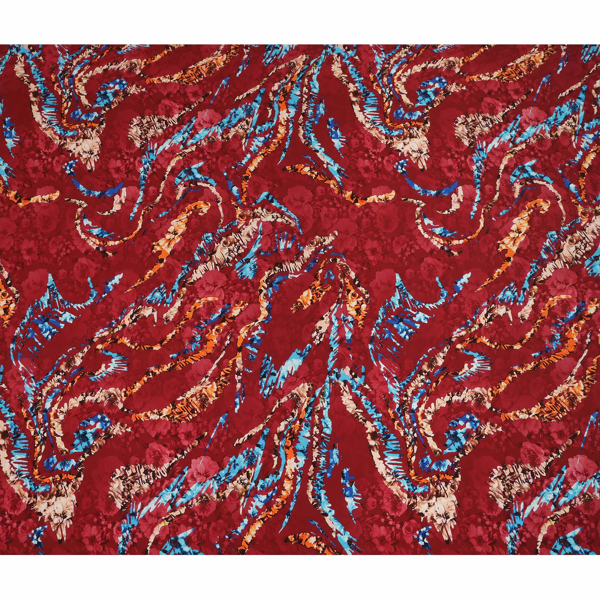 Bold Vibrant Red Exquisite Abstract Printed Viscose Crepe Fabric Soft Flowing Dress Material 110cm Width Premium Quality Elegant Finish Indian Origin - 0644500
