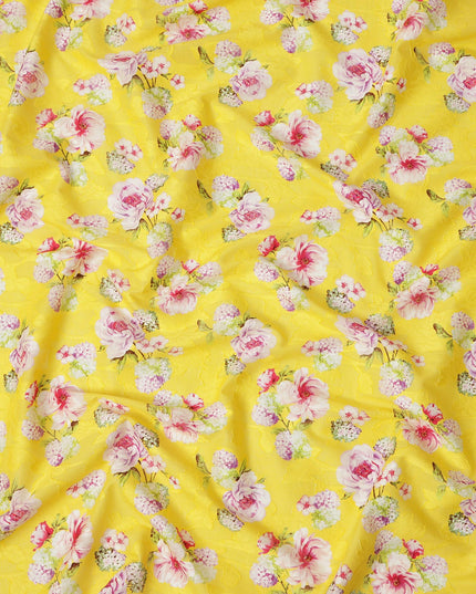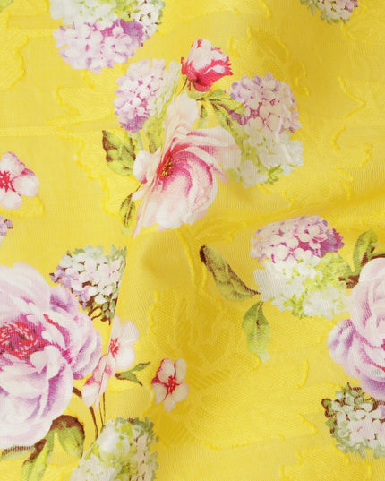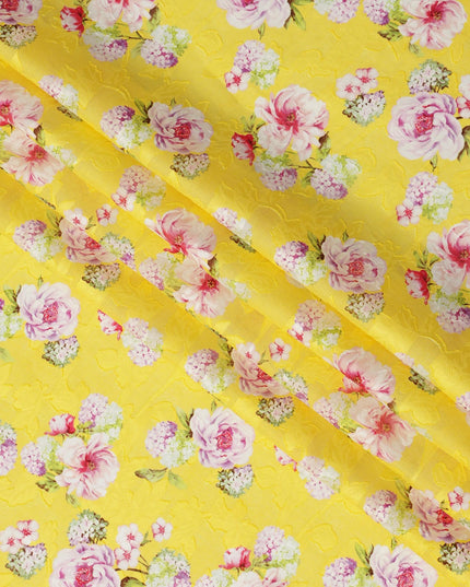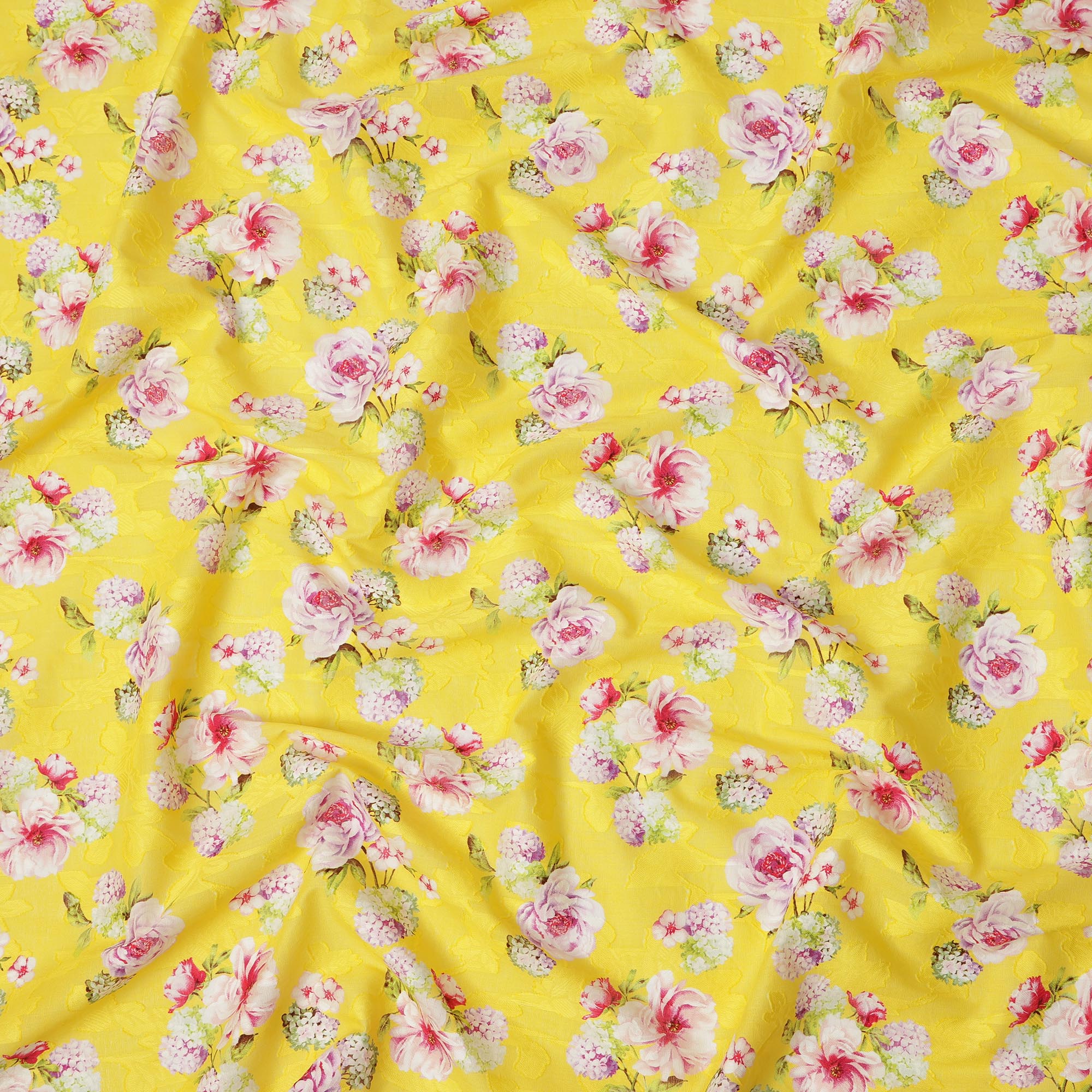 Bright Yellow & Pink Floral Uragiri Cotton Voile Jacquard Fabric – 110cm Wide, Japan-D21940