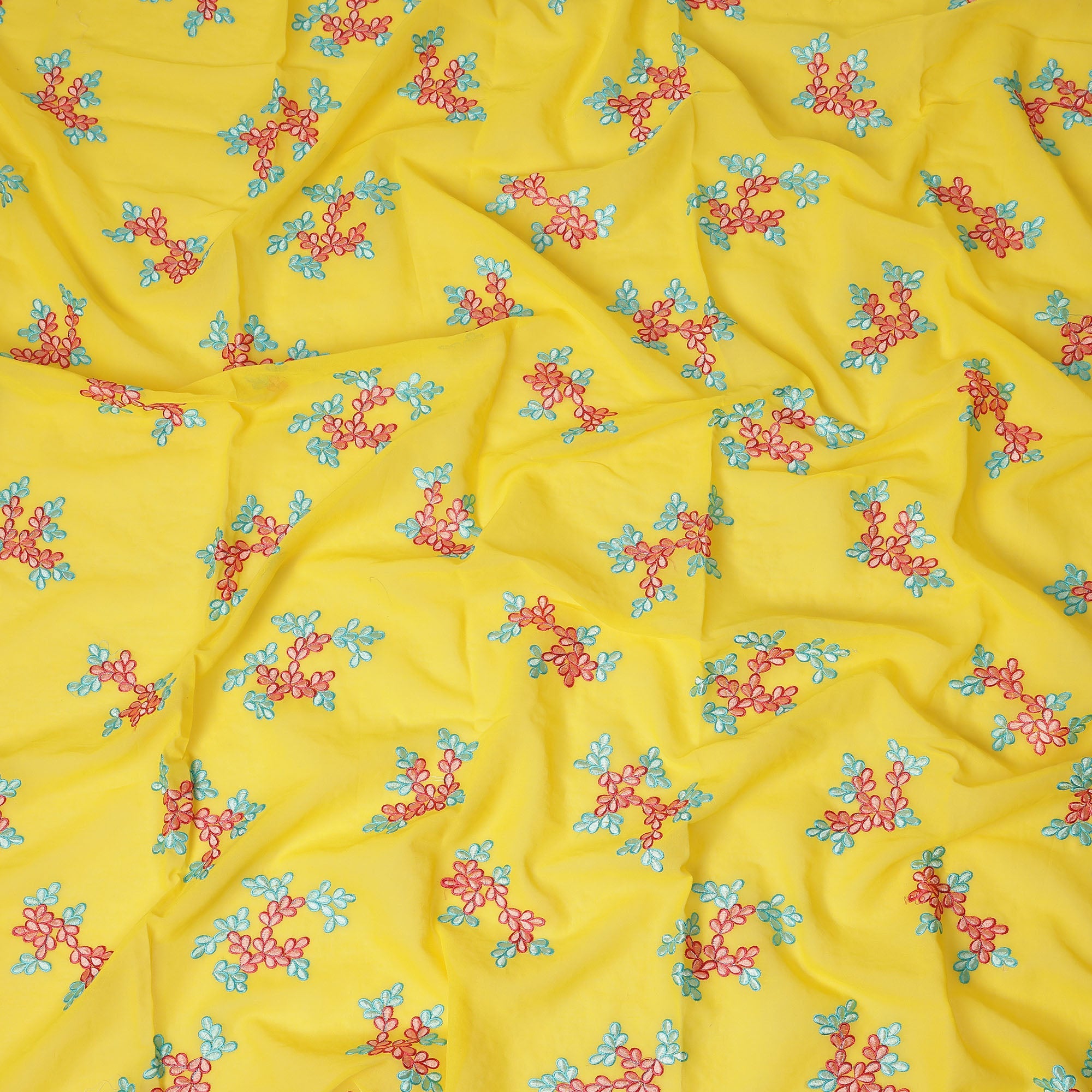 Bright Yellow Traditional Sudanese Thobe Fabric Pure Cotton Voile 4.5 Meters Piece Width 140 Cms Soft Breathable Ethnic Wear Material with Colorful Floral Embroidery Made in India-D27609