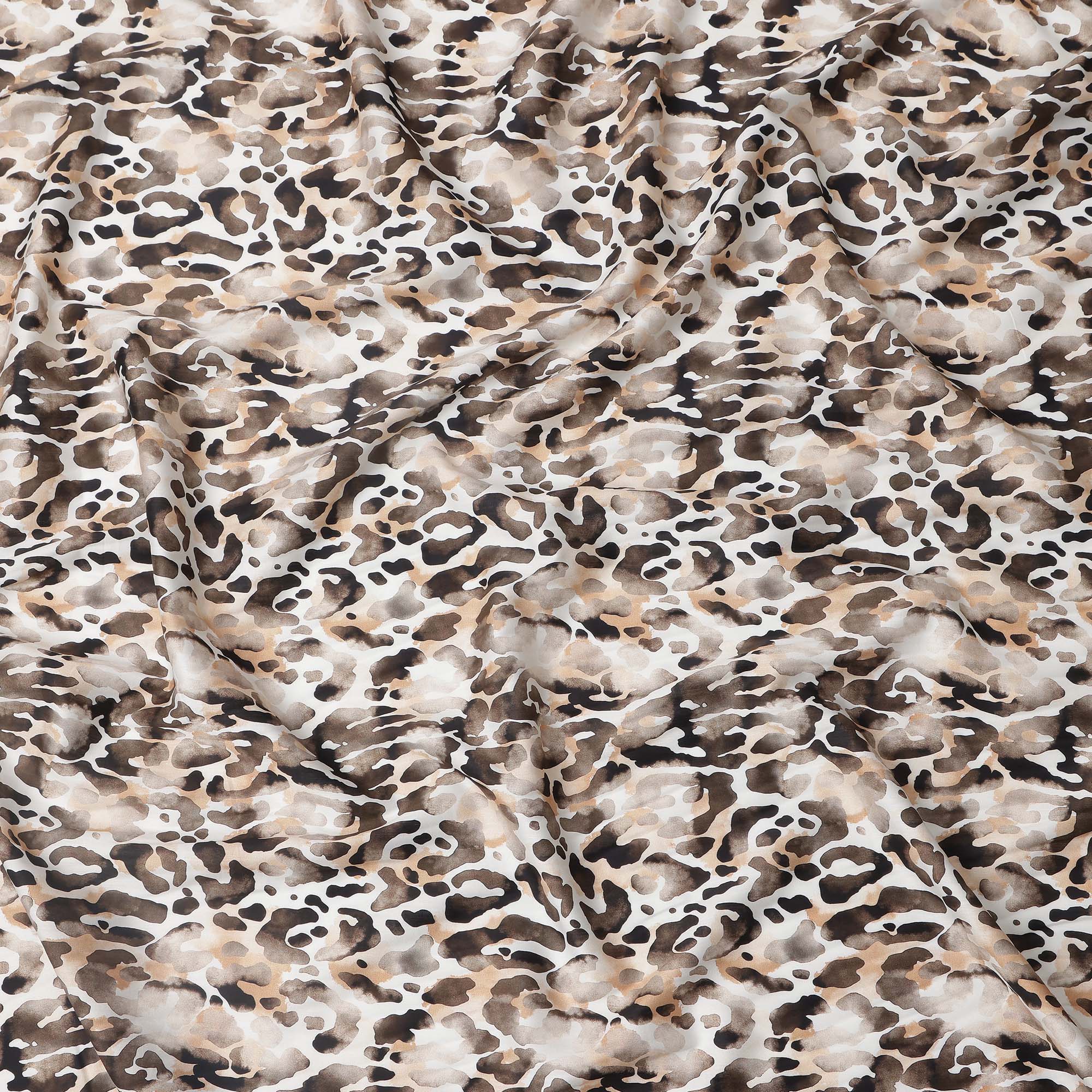 Premium Brown and Beige Abstract Animal Print Pure Cotton Satin Fabric with smooth sheen