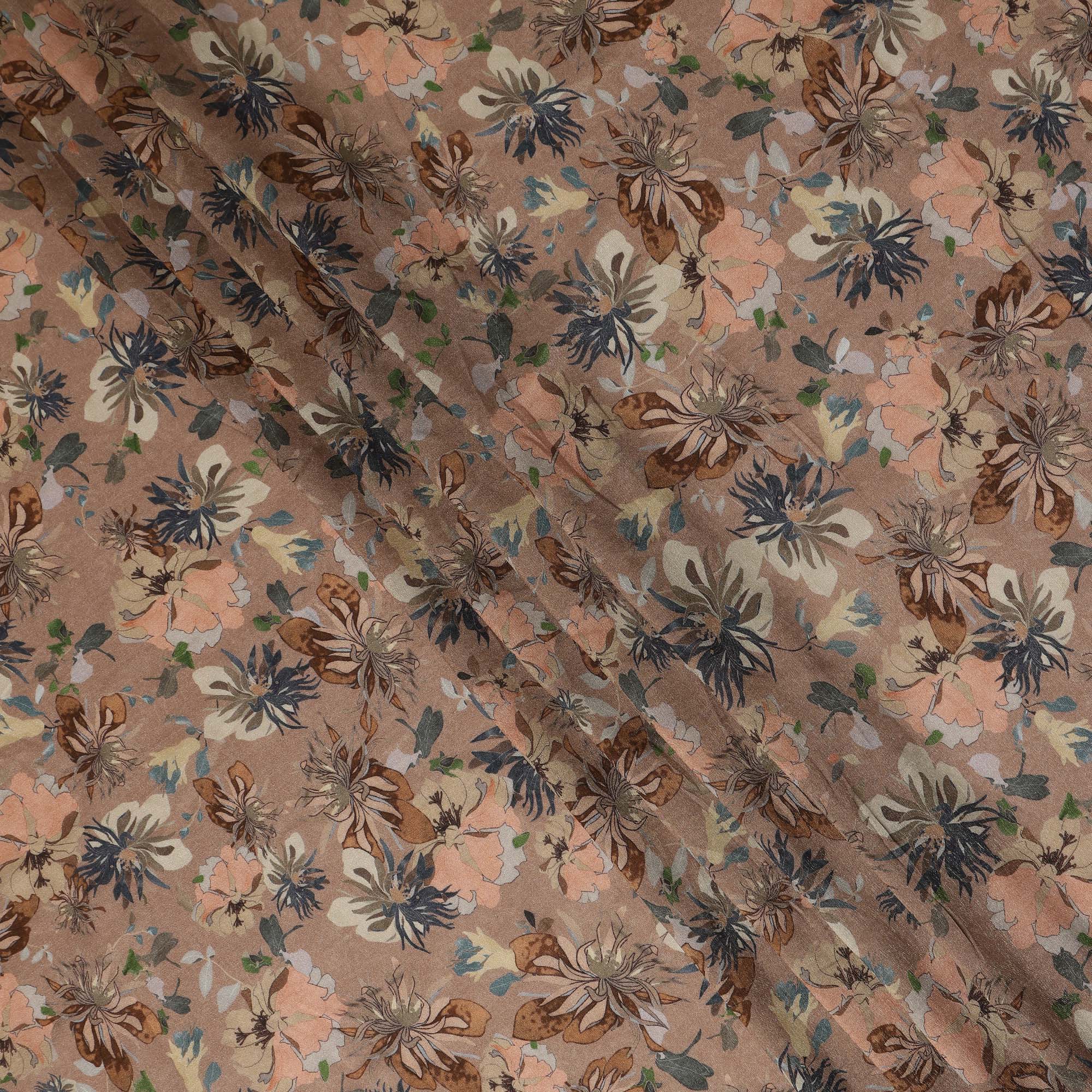 Brown Floral Printed Viscose Modal Satin Fabric 110 Cms India Origin-D27565