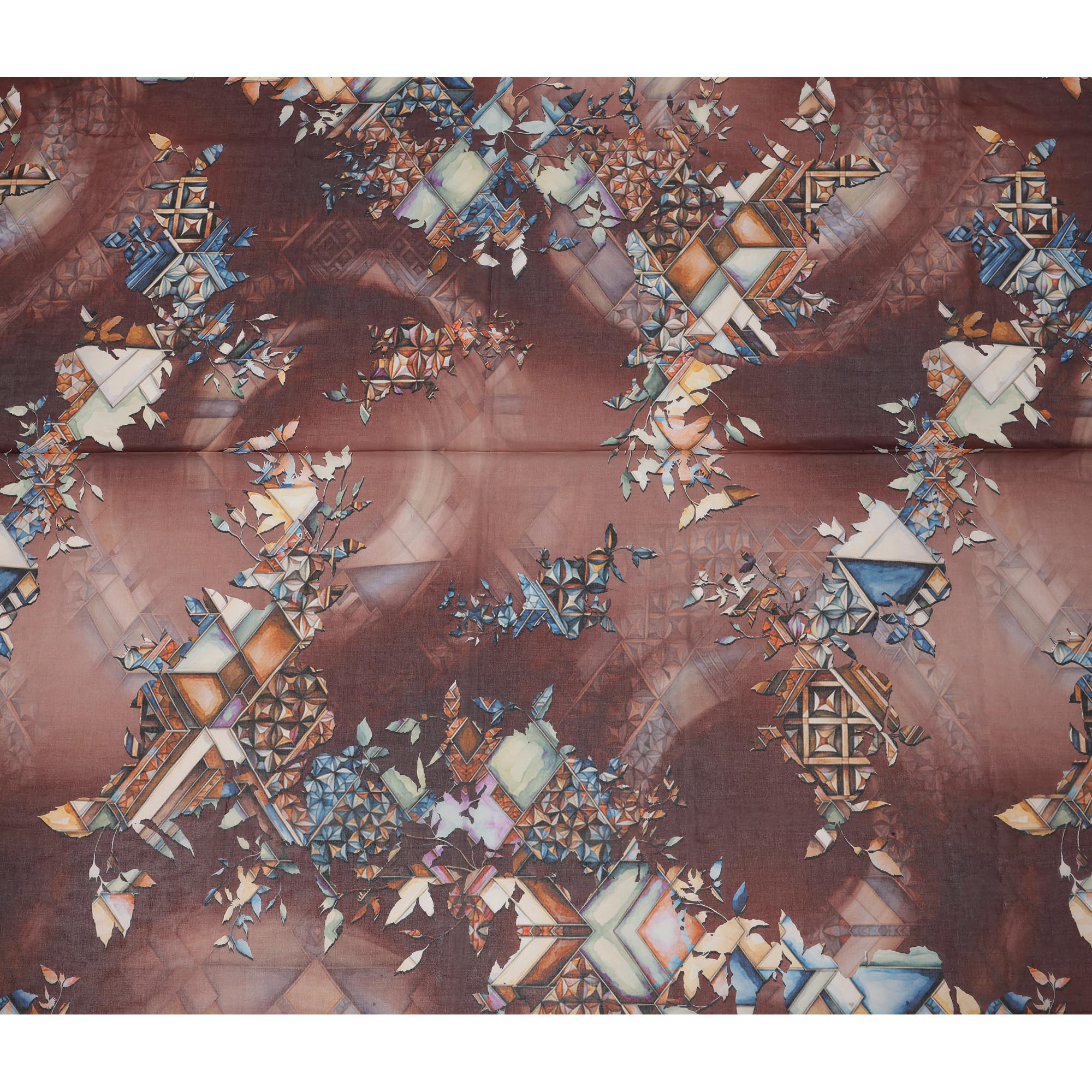 Brown Multi-Color Geometric Printed Somali Cotton Voile Dirac Fabric, 3.5 Mtrs Piece, 140 cm Width, Made in India-D26659
