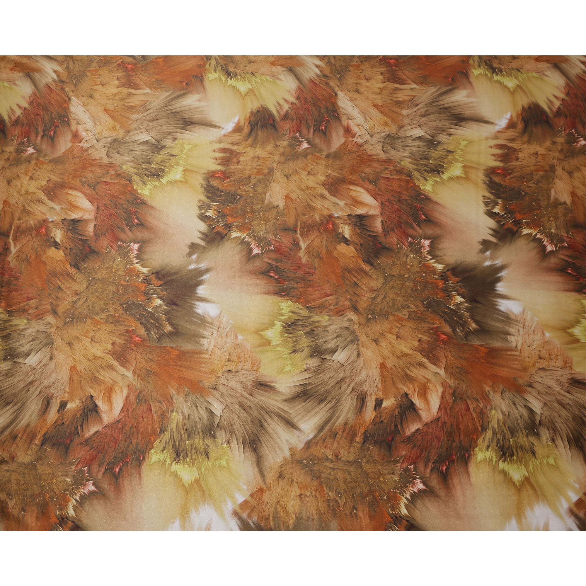 This brown multicolor abstract print pure silk satin fabric is a luxurious representation of elegance and artistic design, perfect for those who seek unique fashion and décor solutions. The warm brown base is enhanced with abstract strokes in earthy tones of caramel, rust, beige, gold, and subtle hints of red, giving it a dynamic, fiery aesthetic that captures attention. Crafted from pure silk, this satin fabric boasts a natural sheen and velvety-smooth texture, ensuring an elegant drape suitable for sarees, gowns, skirts, blouses, and high-end décor pieces like curtains or cushion covers. Measuring 140 cms in width, it offers ample material for both intricate tailoring and larger creative projects. Lightweight, breathable, and durable, it ensures all-day comfort while maintaining a premium, high-fashion appeal. Imported from South Korea, this silk satin reflects superior craftsmanship and refined artistry. Best maintained with professional dry cleaning, it is ideal for festive wear, designer ensembles, or sophisticated interiors. Shop online today to embrace the charm of brown abstract silk satin.
