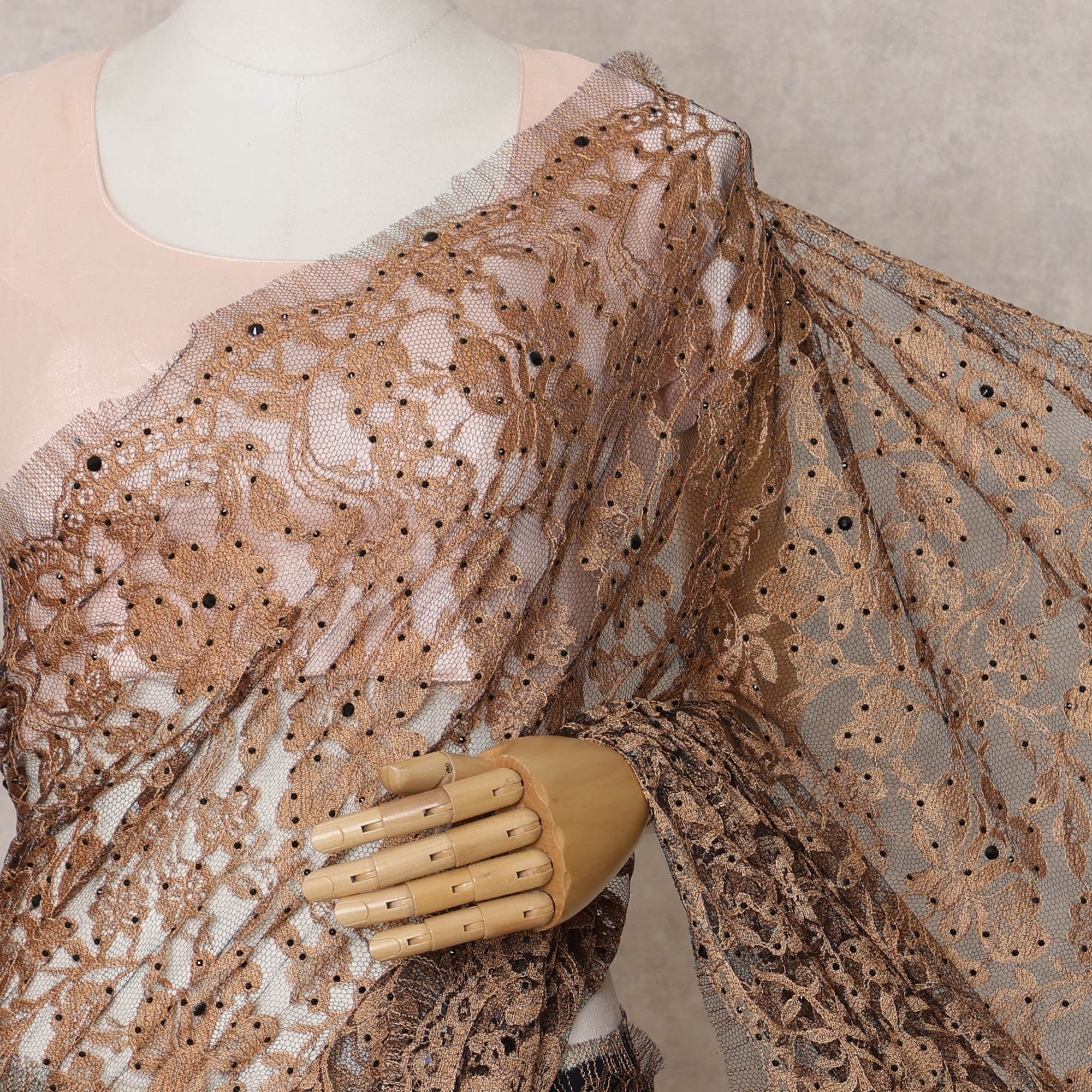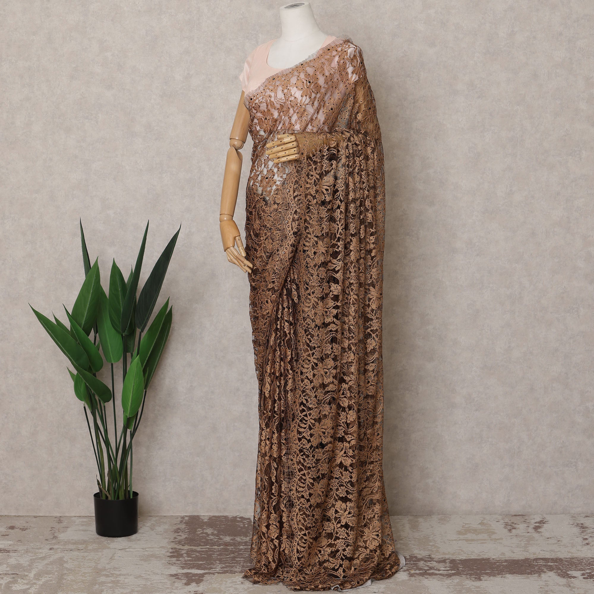 Brown Premium French 2-Tone Chantilly Lace Saree Fabric with Stone Work – 5.5 Meters Length & 110 Cms Width – Imported from France-D22943