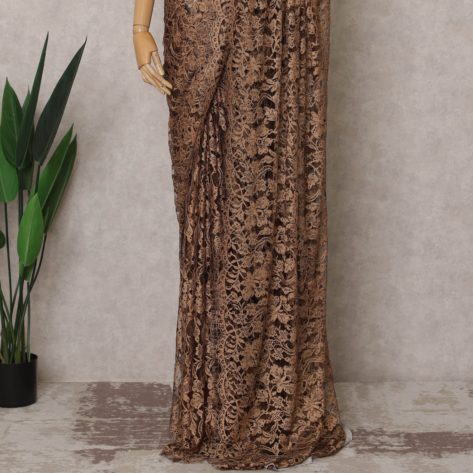 Shop online for authentic Brown French Chantilly lace saree fabric