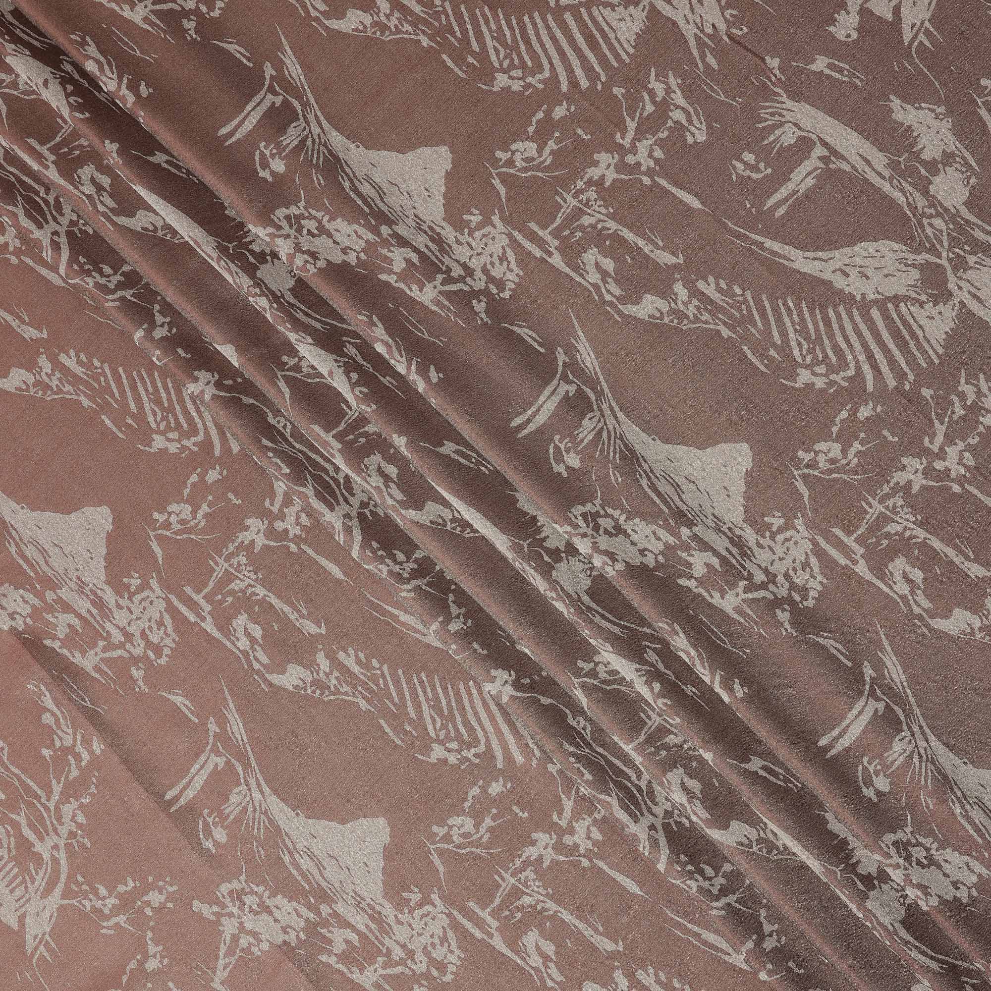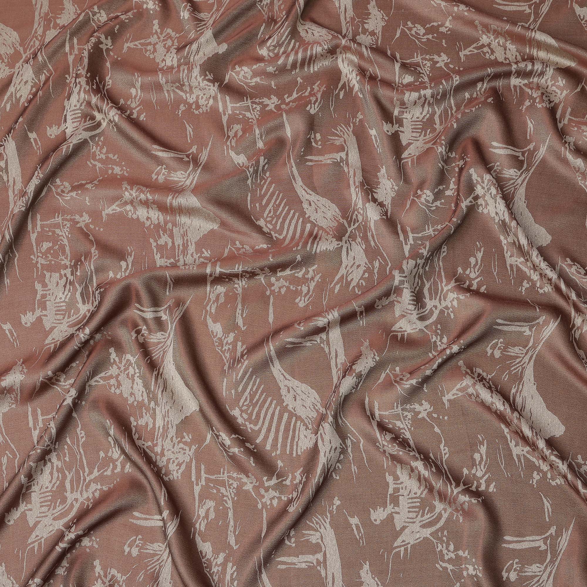 Brown Pure Silk Satin Fabric with Abstract Metallic Design, 140 Cms Width, South Korea-D25350