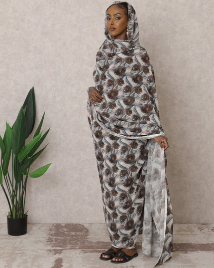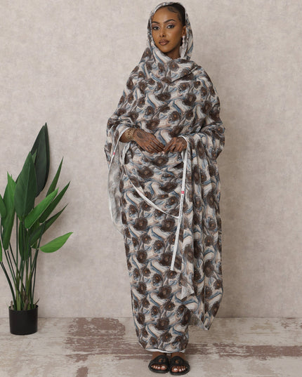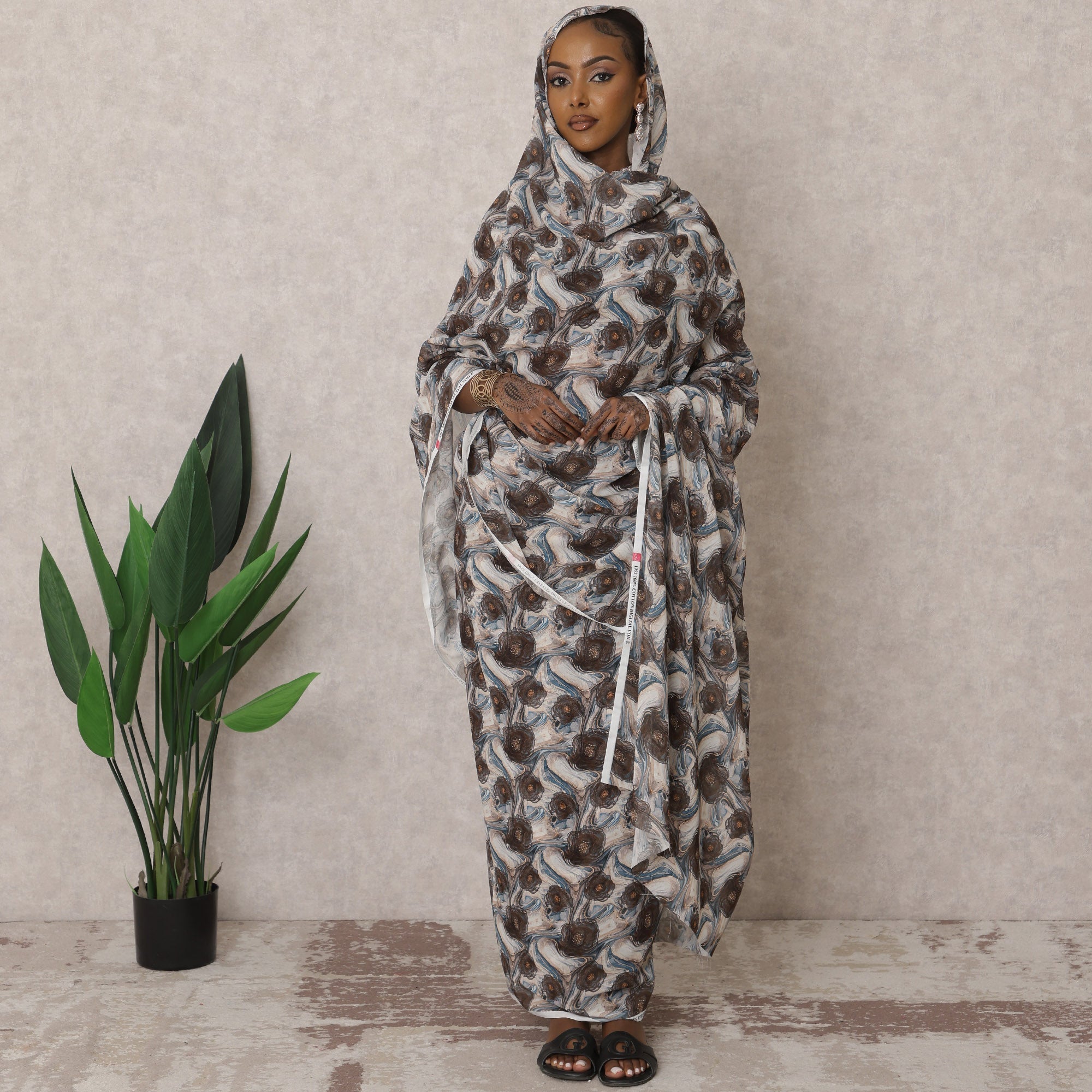 Experience elegance with this stunning brown and white traditional Sudanese thobe, crafted from premium pure cotton voile fabric for a soft, breathable, and lightweight feel. The 4.5-meter-long fabric drapes beautifully, ensuring a modest yet stylish silhouette perfect for cultural events, festive gatherings, and everyday wear. Featuring an artistic abstract print in rich brown and soft white hues, this thobe blends heritage with contemporary sophistication. With a width of 110 cm, it provides full coverage while maintaining a comfortable and airy fit. Made in India with expert craftsmanship, this high-quality thobe is easy to maintain, retaining its vibrant design and softness even after multiple washes, making it a must-have for any modest fashion collection.
