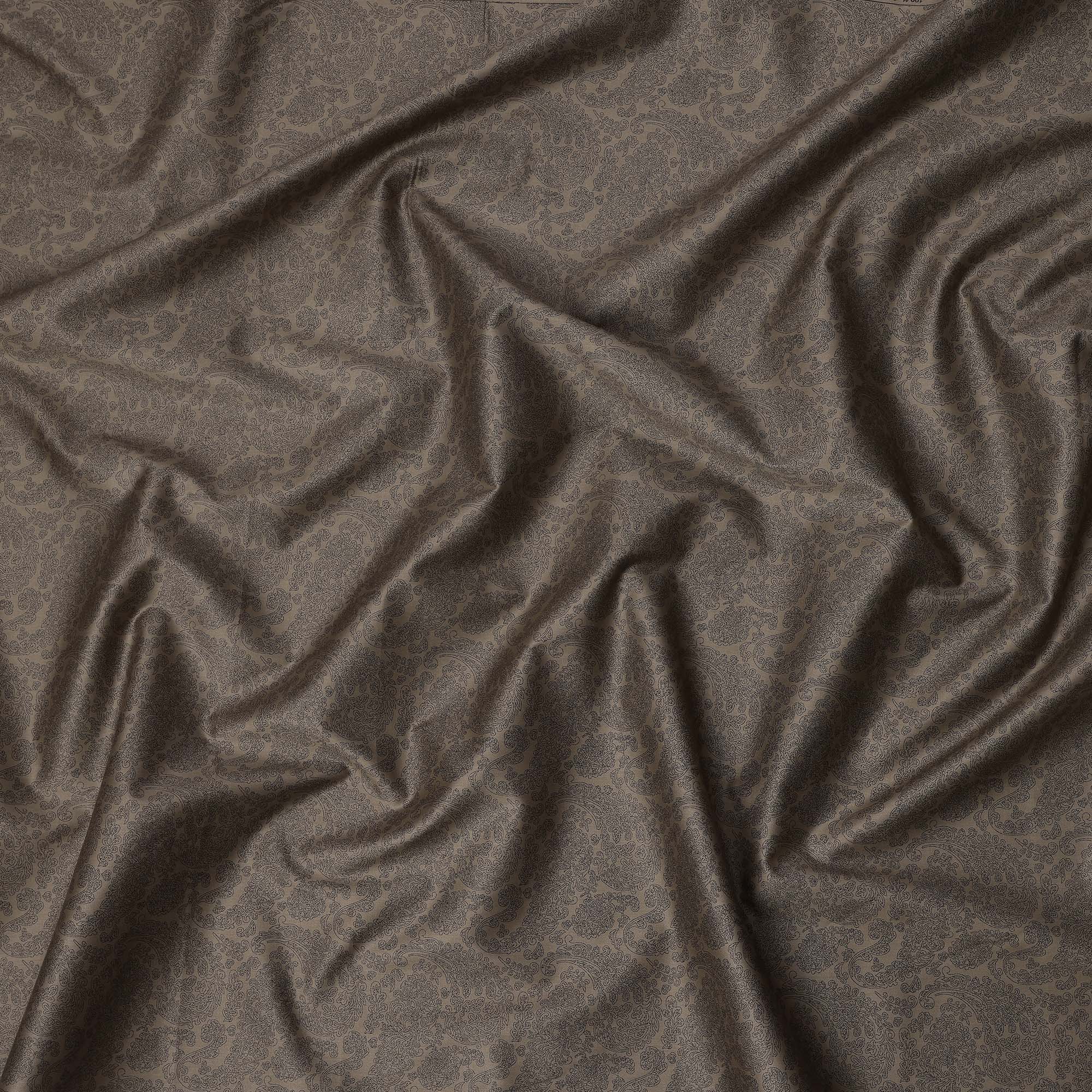 Premium brown Blended Cotton shirting fabric with intricate black paisley print