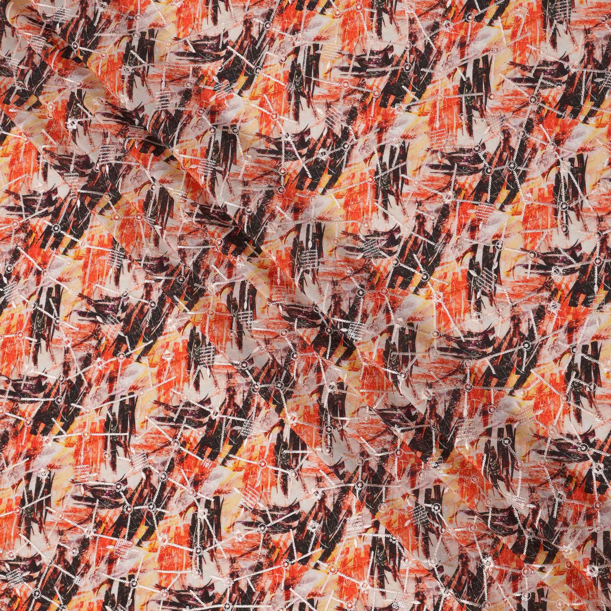 Burnt Orange and Black Abstract Brushstroke Digital Print Viscose Crepe Fabric, 110 Cms Width, Made in India-D23628