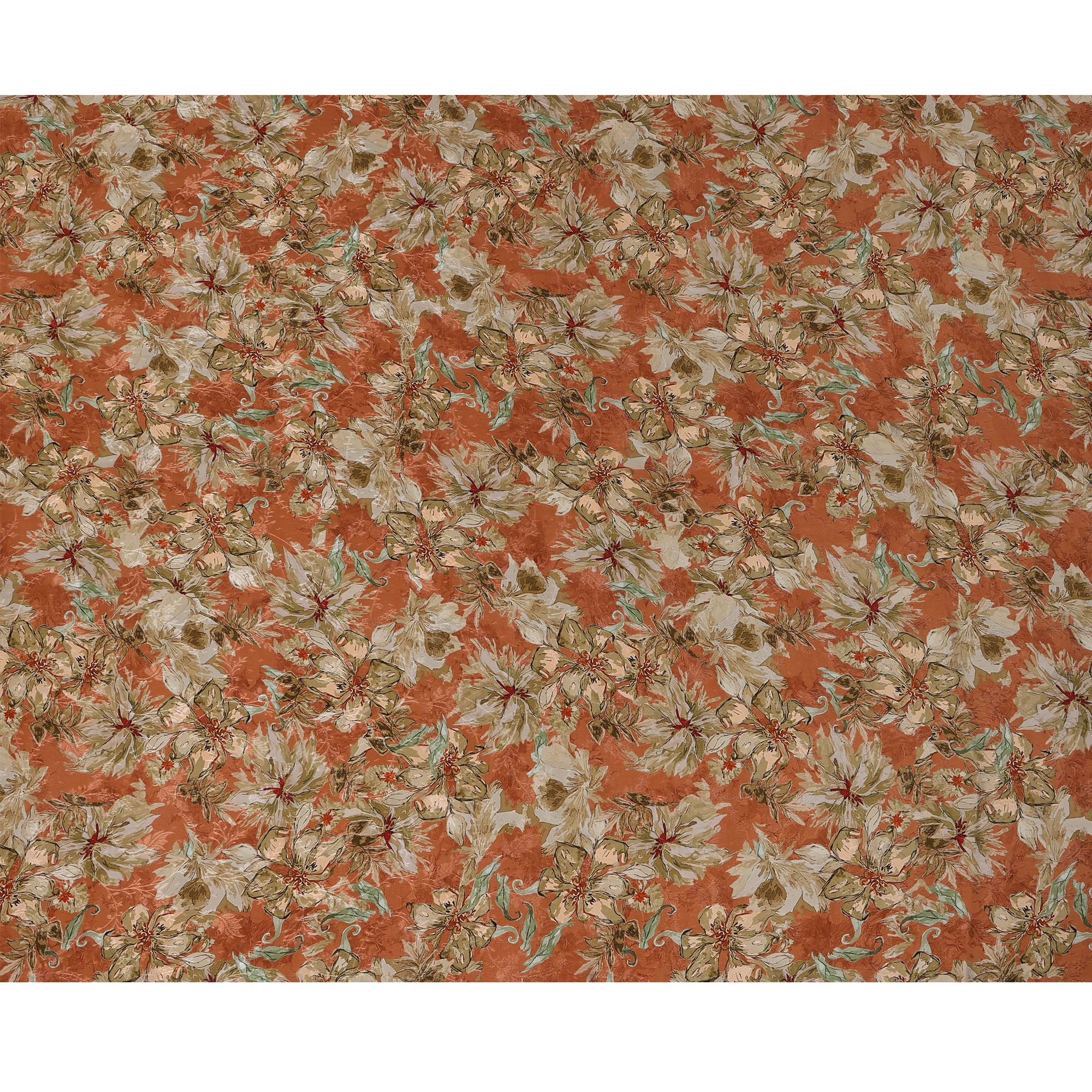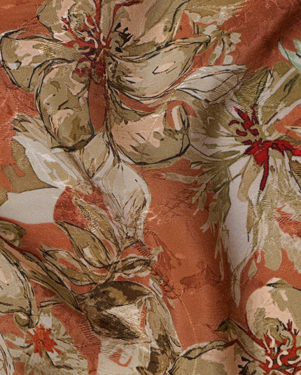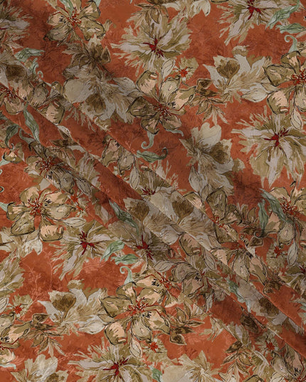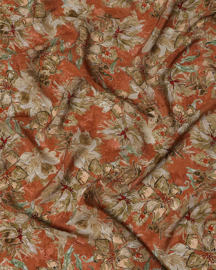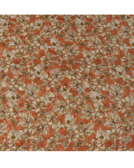 Burnt Orange Artistic Floral Digital Print Viscose Fabric, 110 cm Width, Made in India-D22923