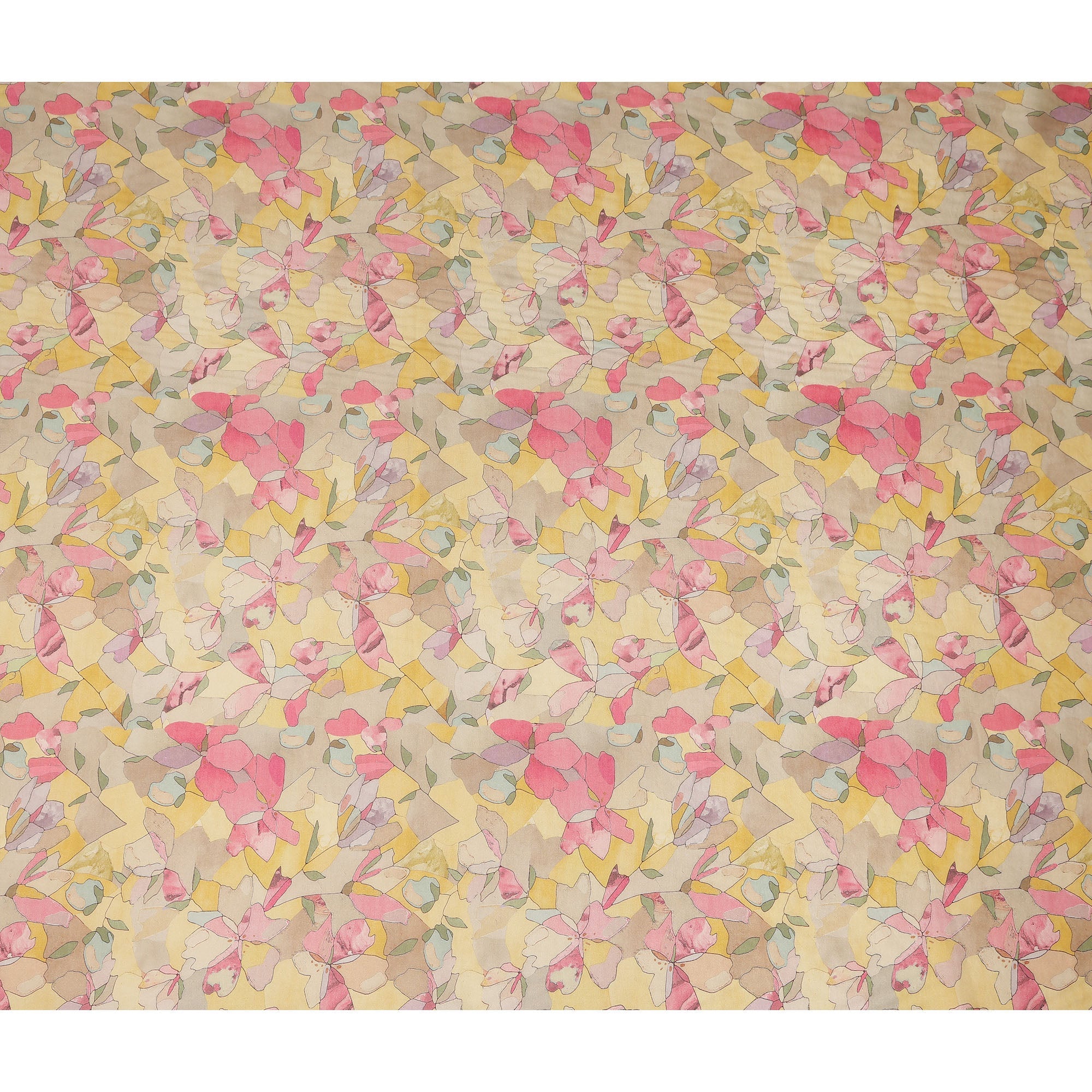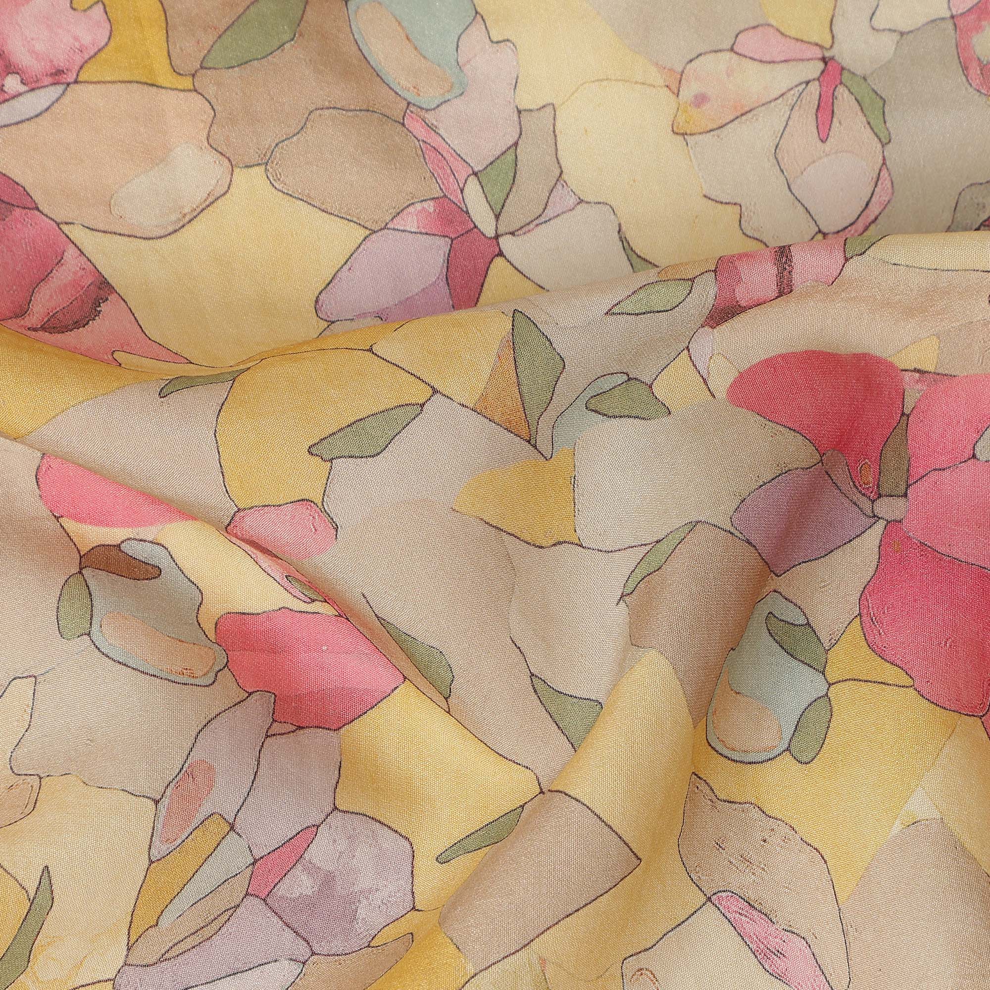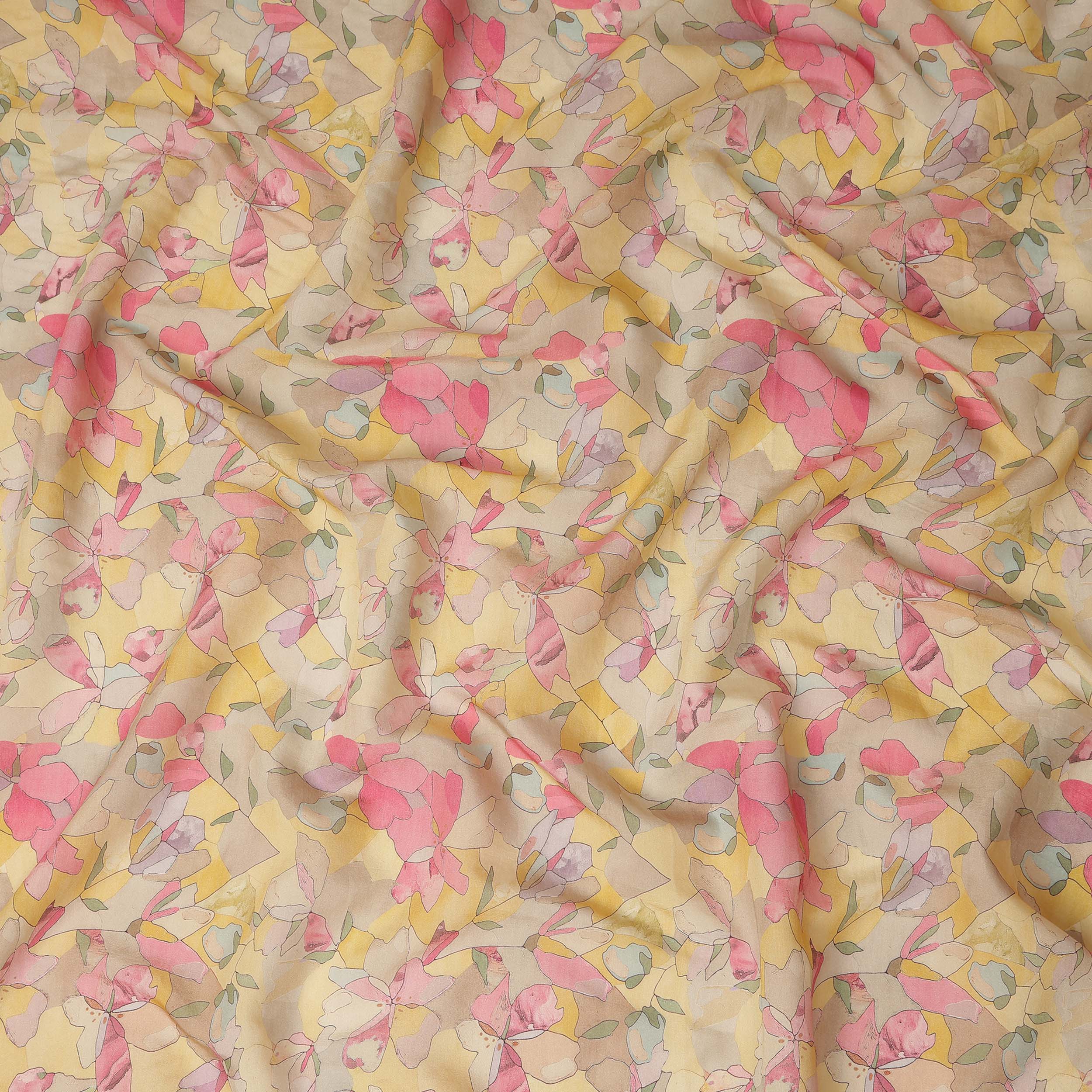 Butter yellow base with abstract pastel floral print creates a vibrant yet elegant appearance for stylish garments.