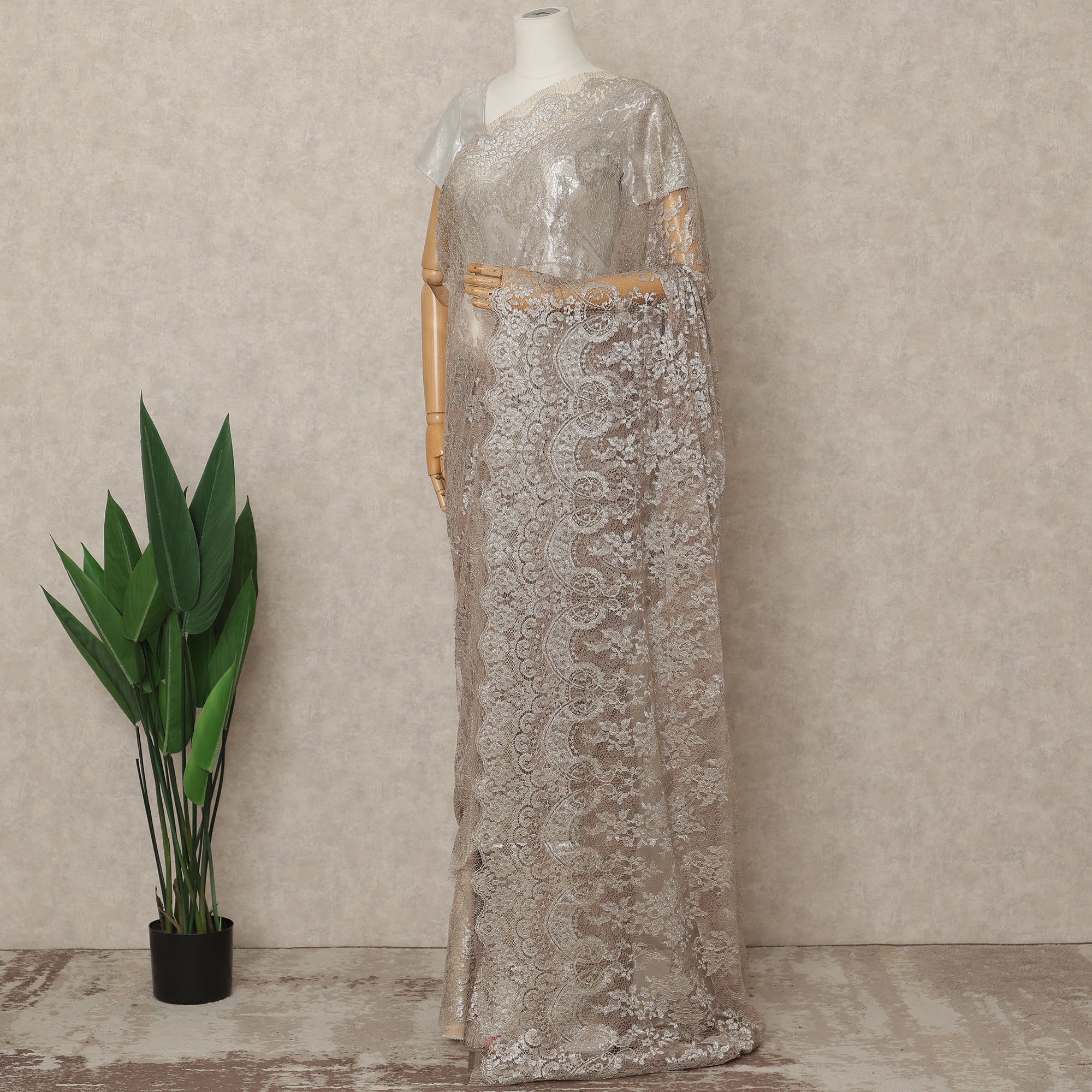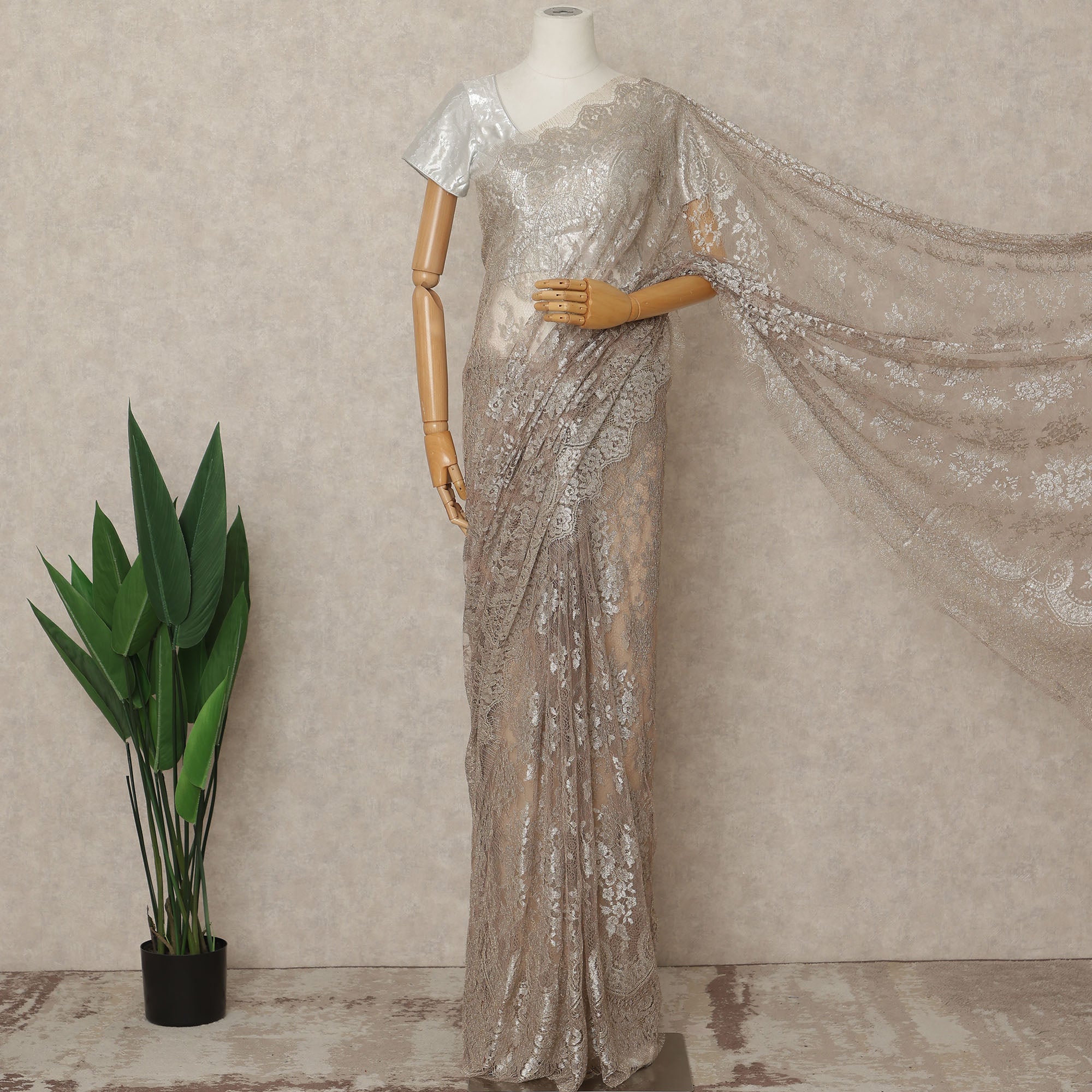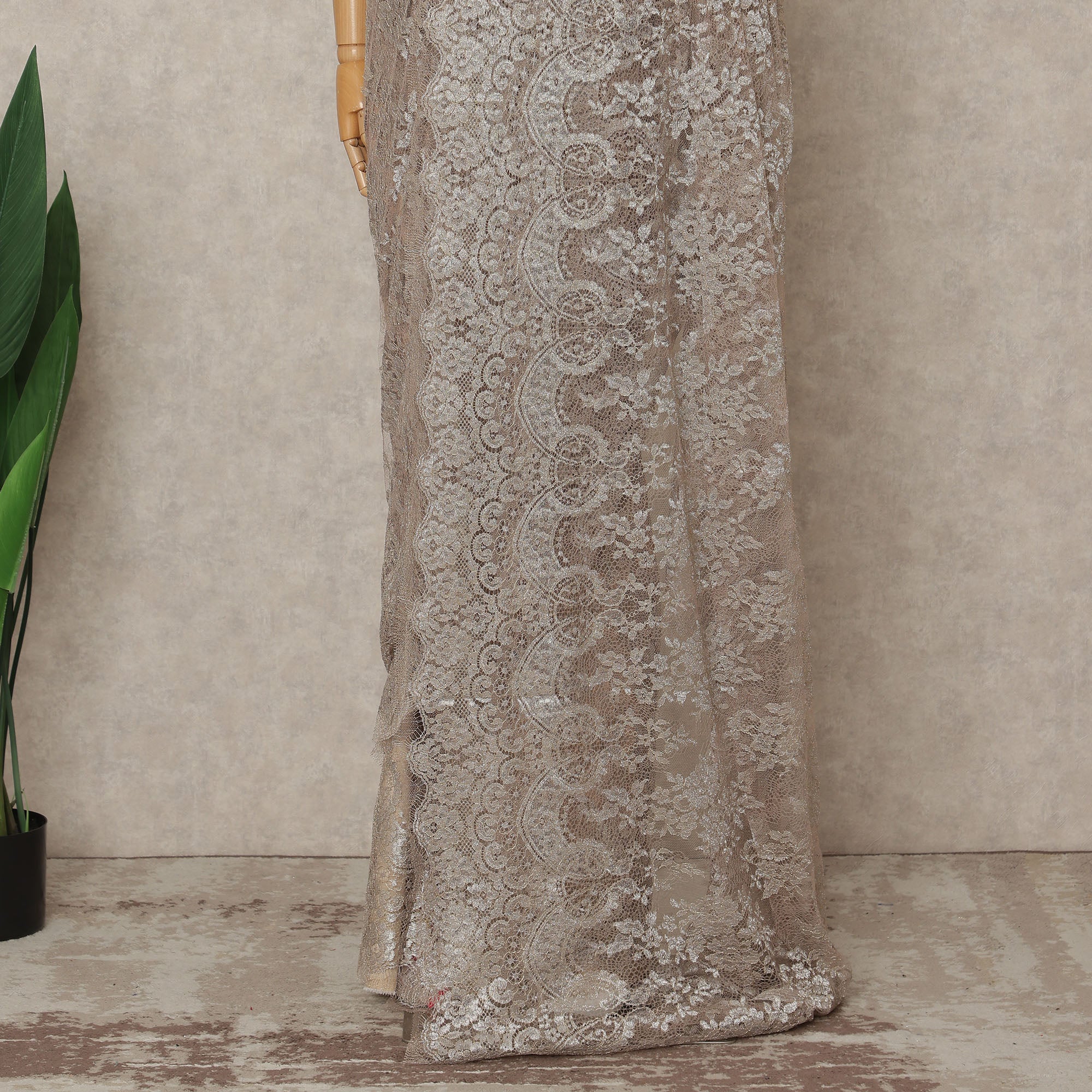 Champagne Beige Premium French Metallic Chantilly Lace Saree Fabric, 5.5 Mtrs Length, 110 Cms Width, Crafted in France – Luxurious Metallic Floral Lace, Blouse Not Included-D26418