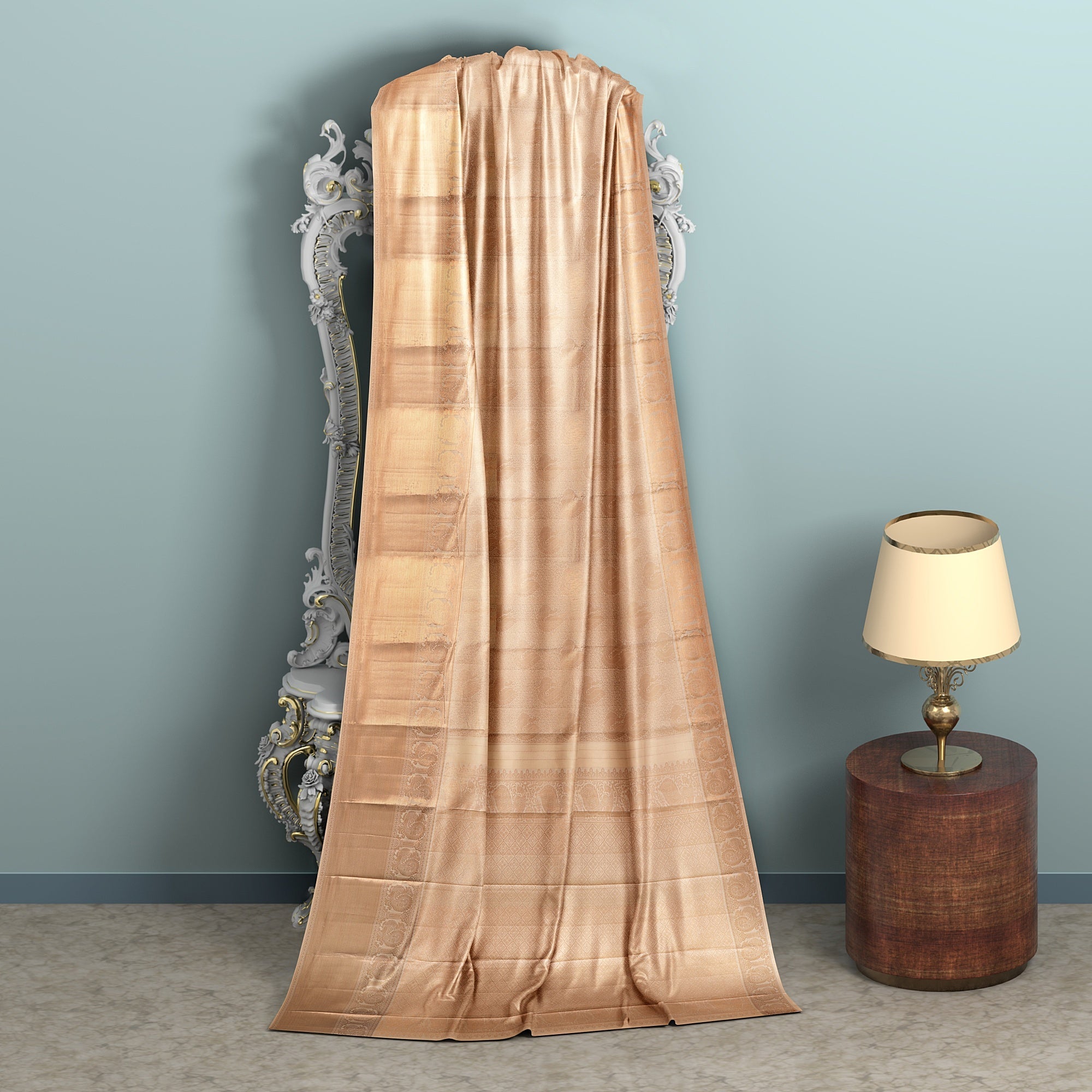 Champagne beige body with elegant self-zari woven design