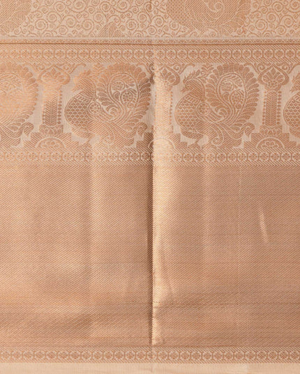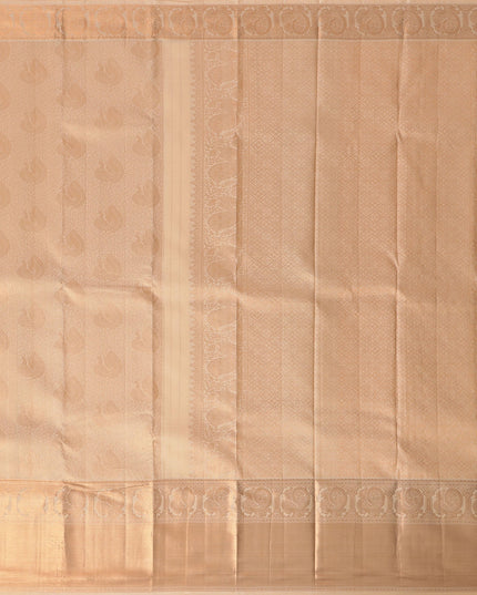 Champagne Beige Self Zari Woven Kanjeevaram Pure Silk Bridal Saree, Traditional Border with Ornamental Pallu, 110 cm Width, Made in India-D22776