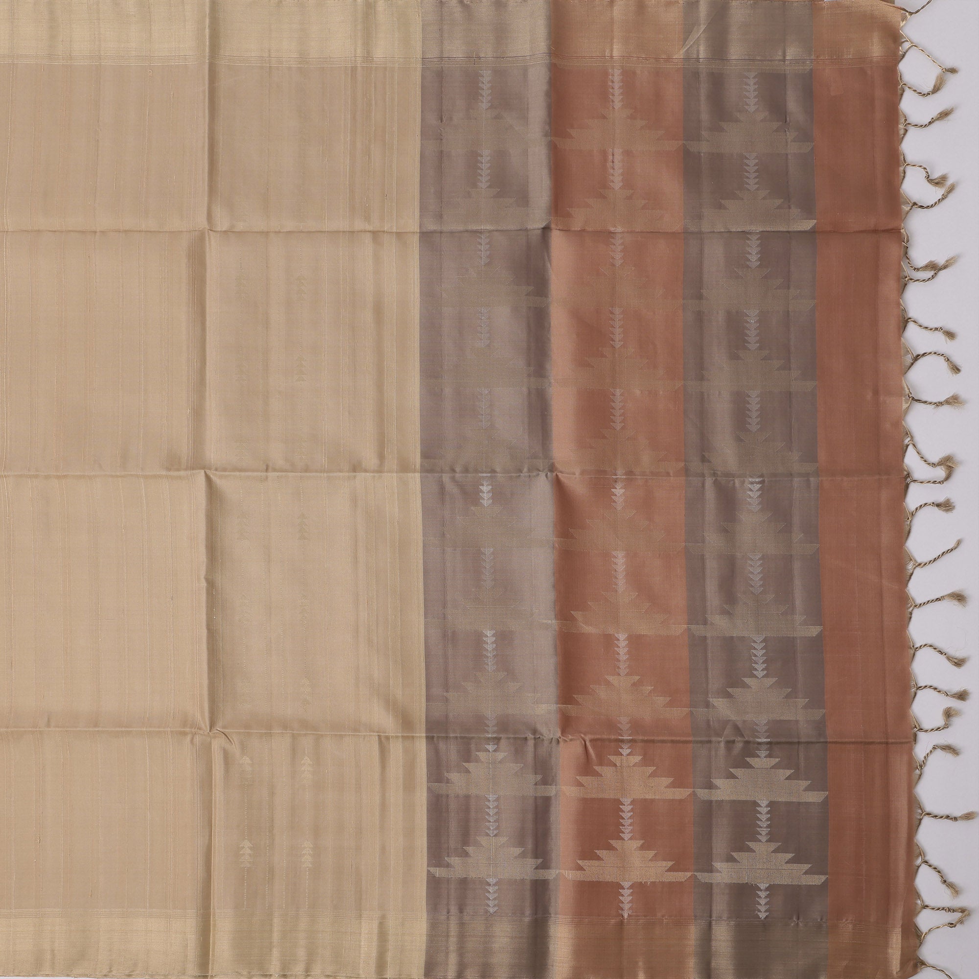 Champagne Beige Soft Silk Saree with Subtle Arrow Weaves and Rustic Pallu Contrast, 5.5 Meters with Blouse Piece, Originating from India-D22692