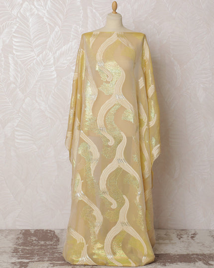 Champagne Gold French Silk Chiffon Fabric with Silver Lurex Patterns, Traditional Somali Dirac - 140 cm Width, 3.5 Meters-D20147