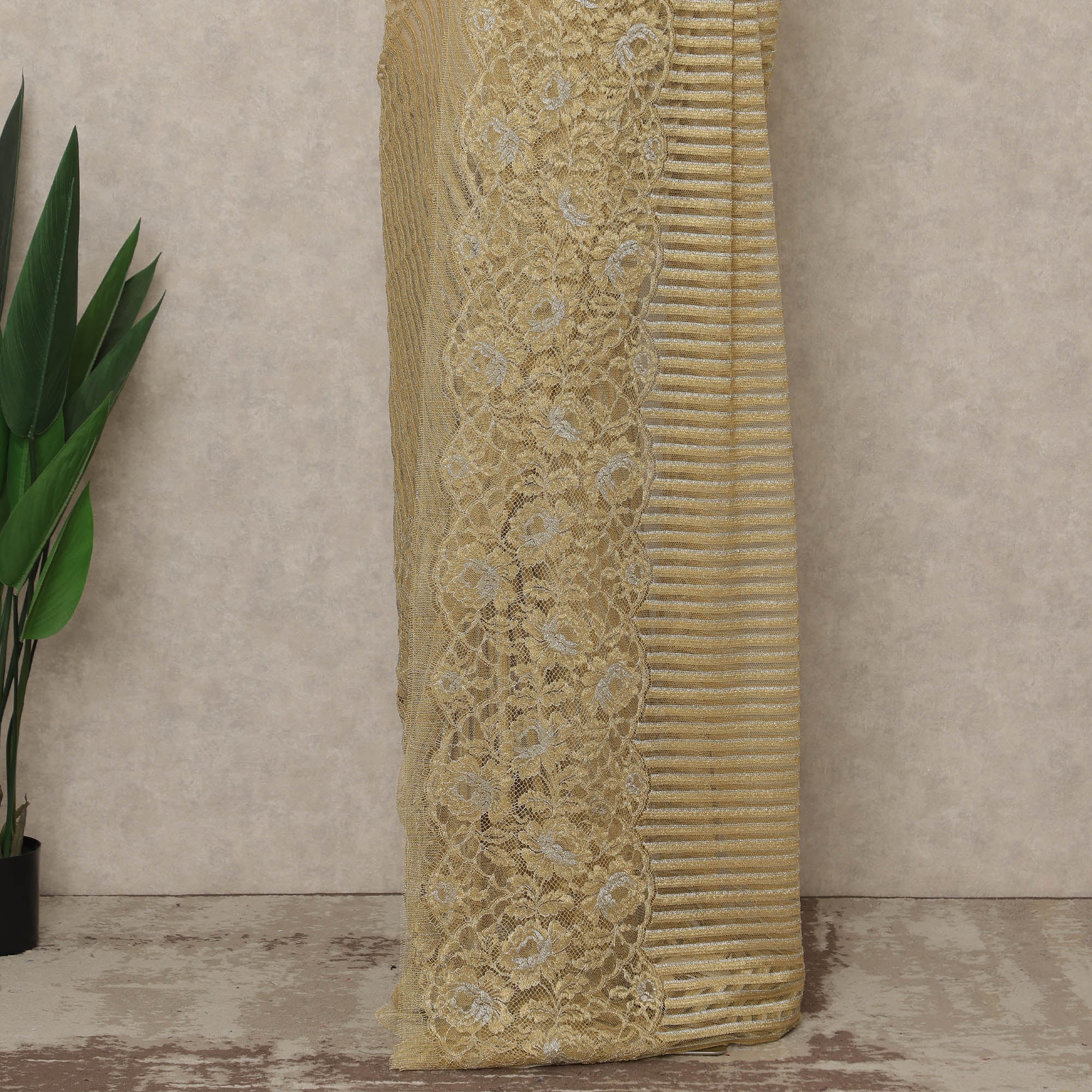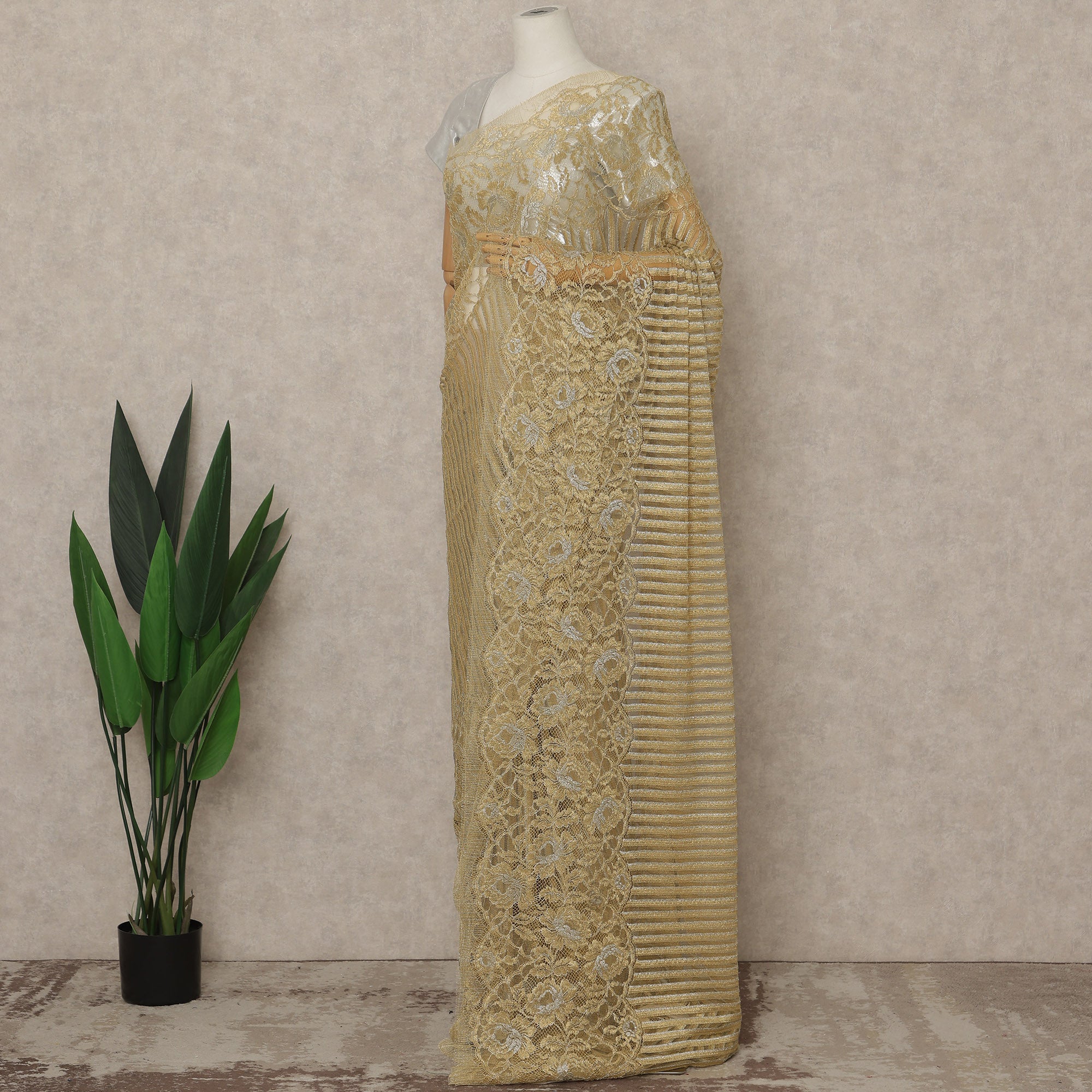 Champagne Gold Premium French Metallic Chantilly Lace Saree, 5.5 Mtrs Length, 110 Cms Width, Made in France-D27141