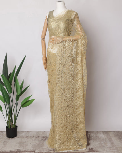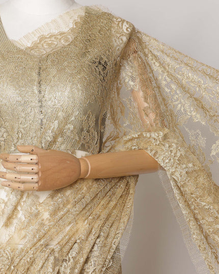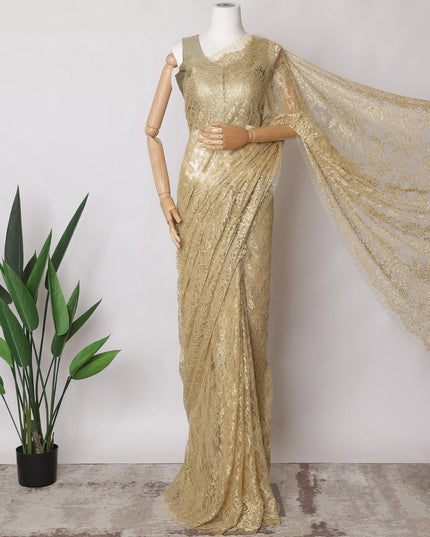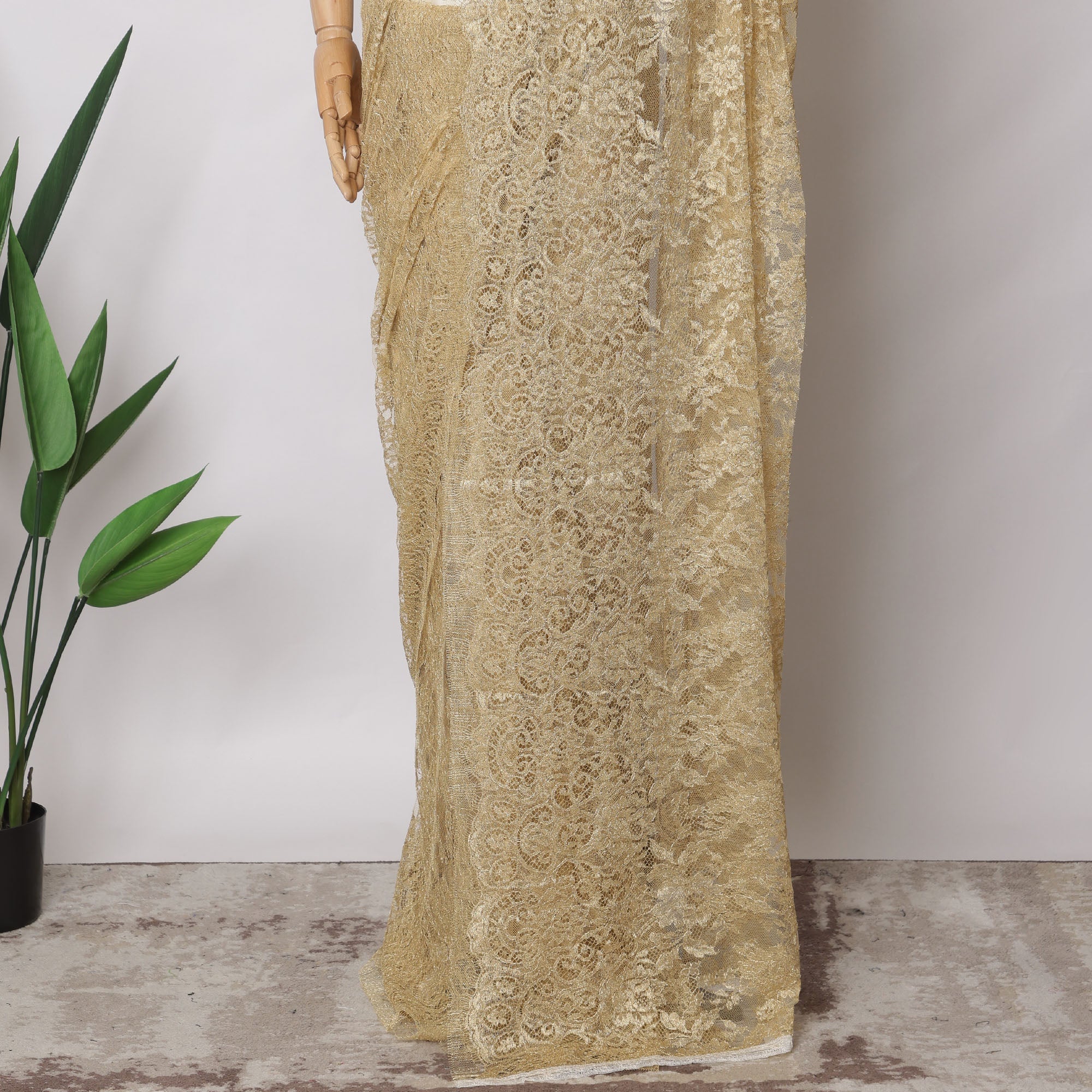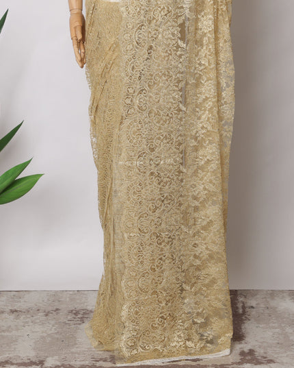 Champagne Gold Premium French Metallic Chantilly Saree Lace Fabric, 5.5 MetersX110 Cms-D21504