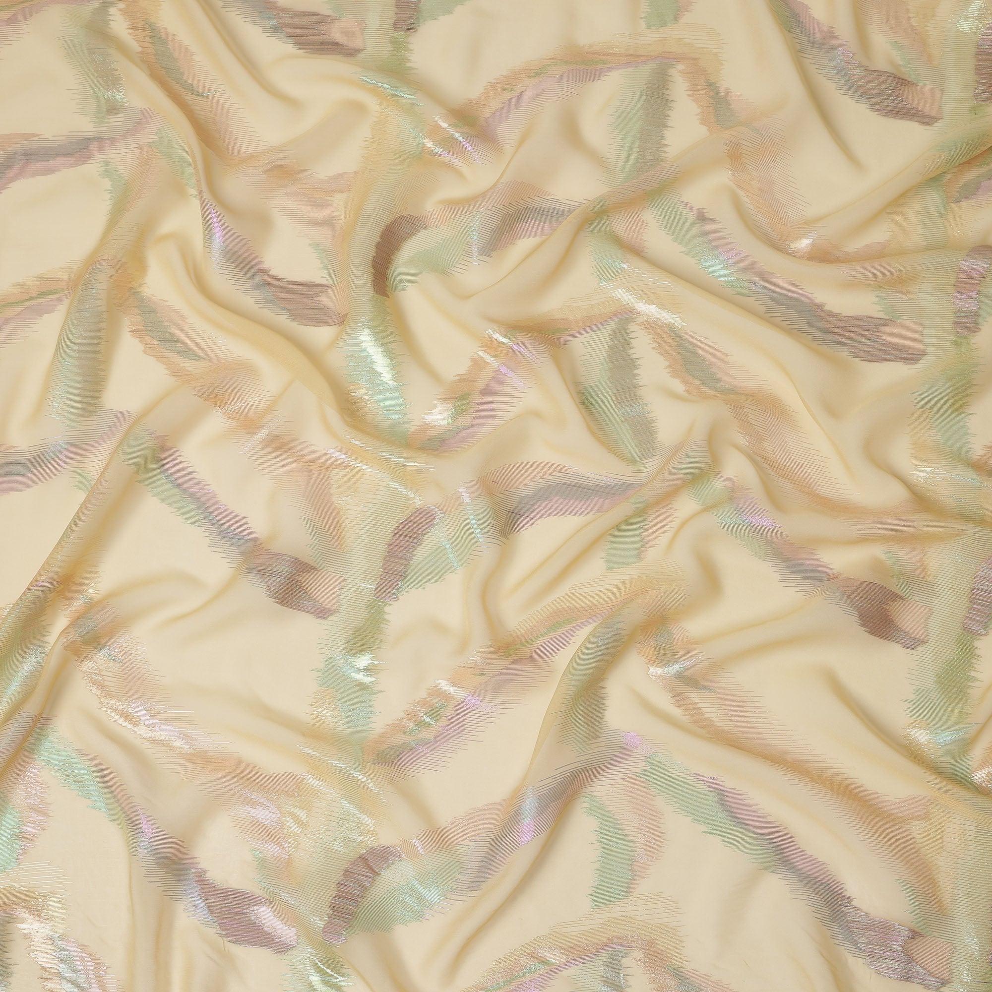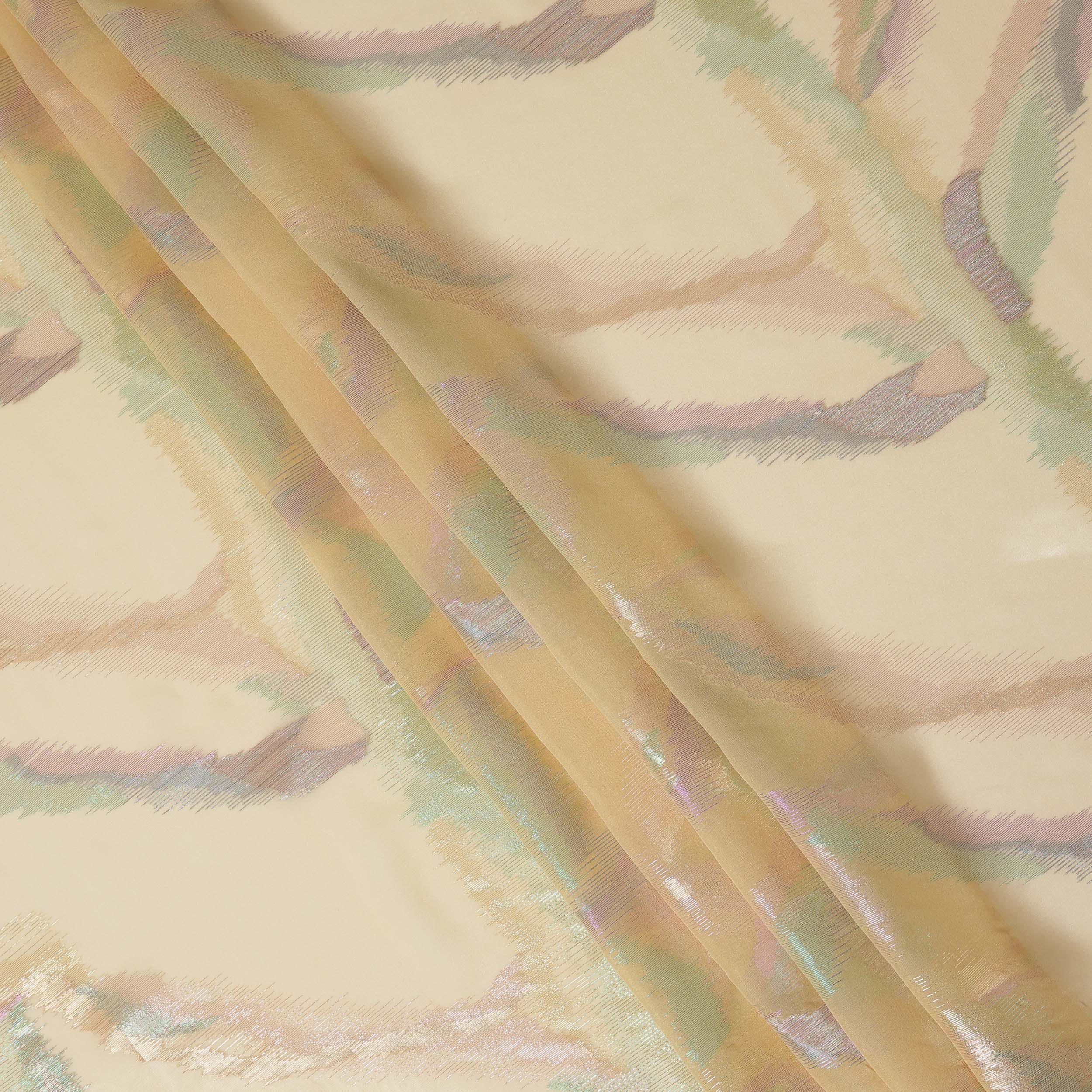 Champagne Gold Premium Pure Silk Chiffon Fabric with multicolor metallic lurex woven detailing