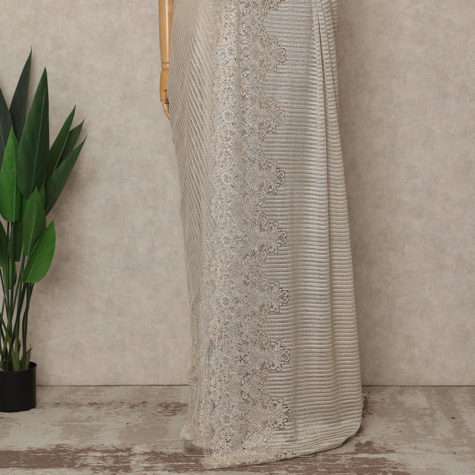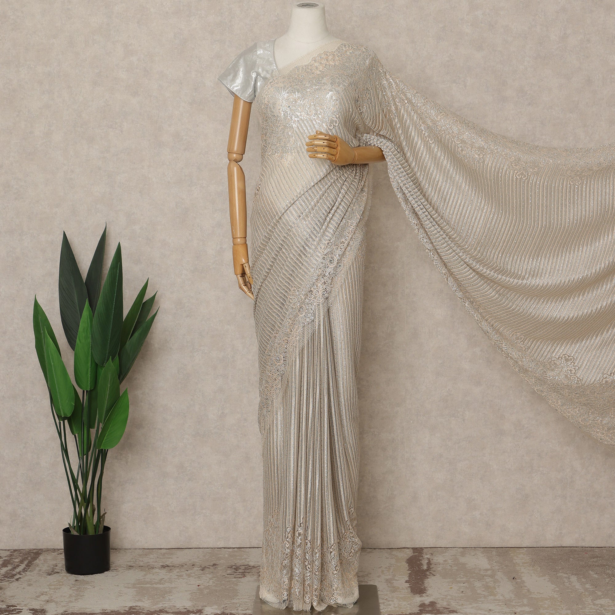 Champagne Silver Premium French Metallic Chantilly Saree Lace with Stone Work 5.5 Mtrs Length, Width 110 Cms and Made in France-D27169