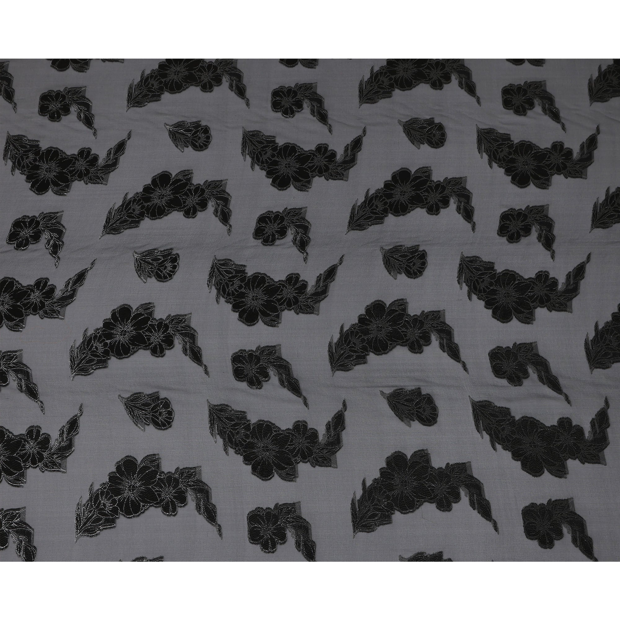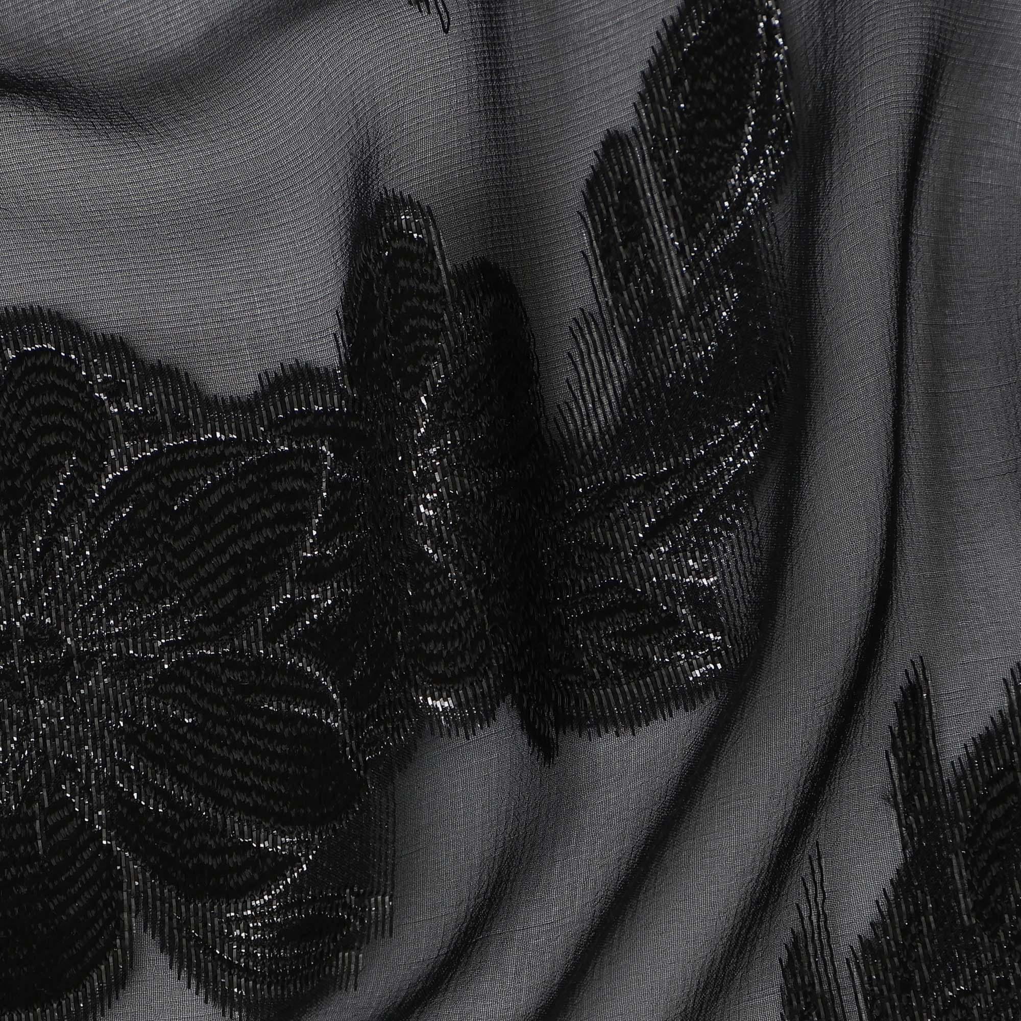 Charcoal Black Floral Jacquard Metallic Lurex Design Premium French Silk Chiffon Fabric, 110 Cms Width, Made in France-D25735