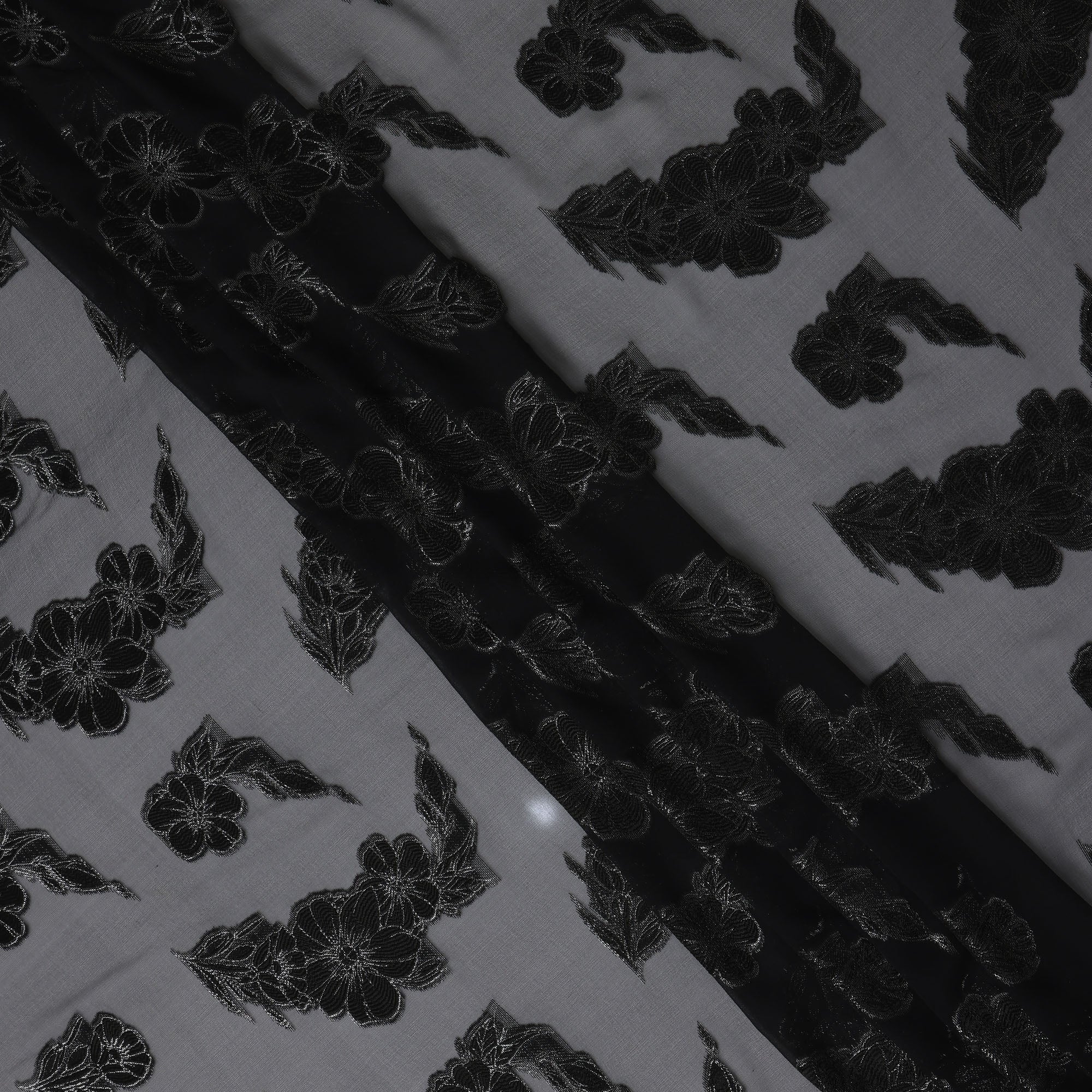 Elegant charcoal black tone with intricate self-woven floral motifs