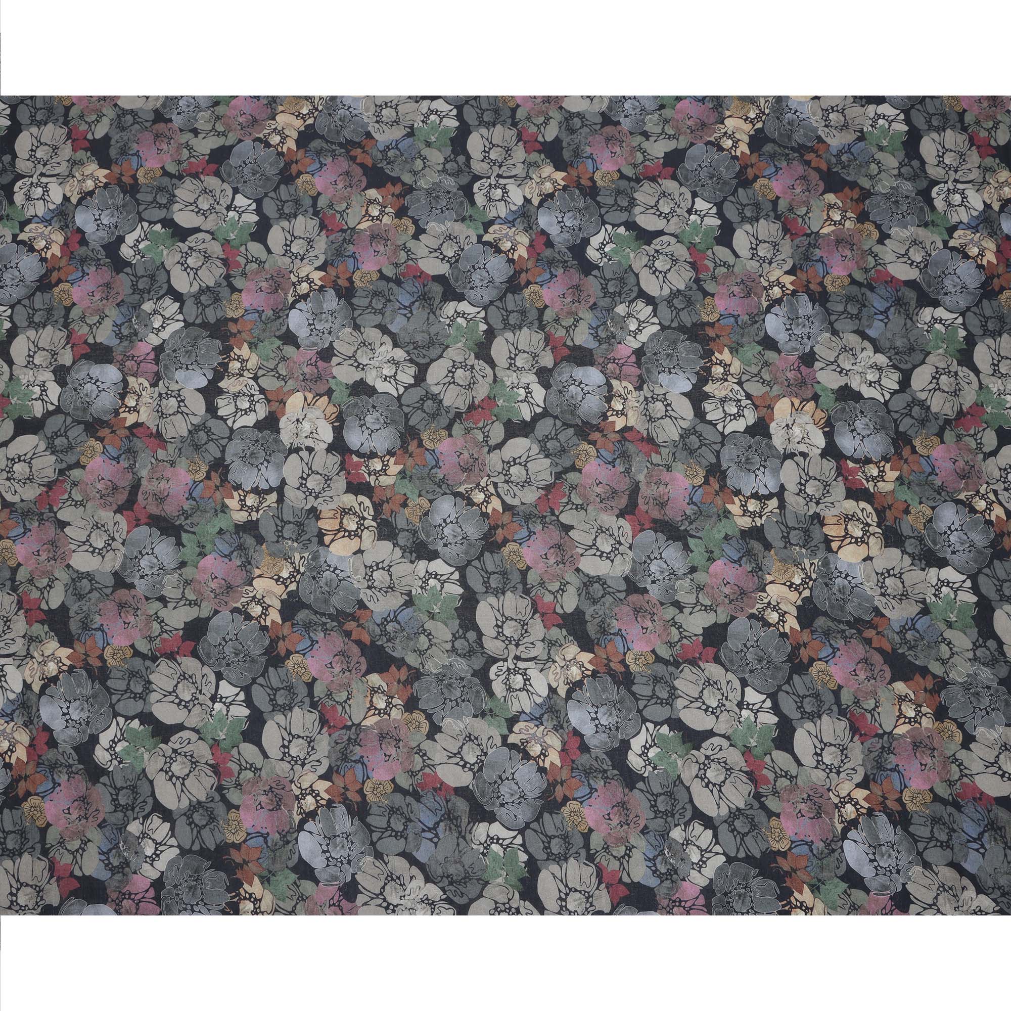 This Charcoal Black Multicolor Viscose Crepe Fabric is an exquisite expression of artistic charm, showcasing a sketch-style floral print in... Read more Read more