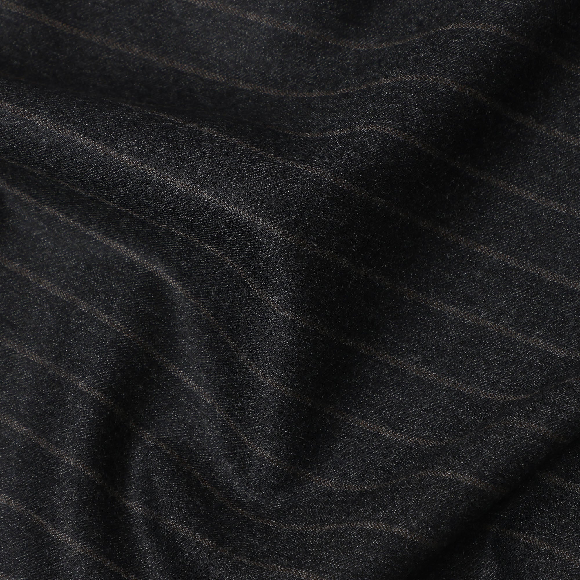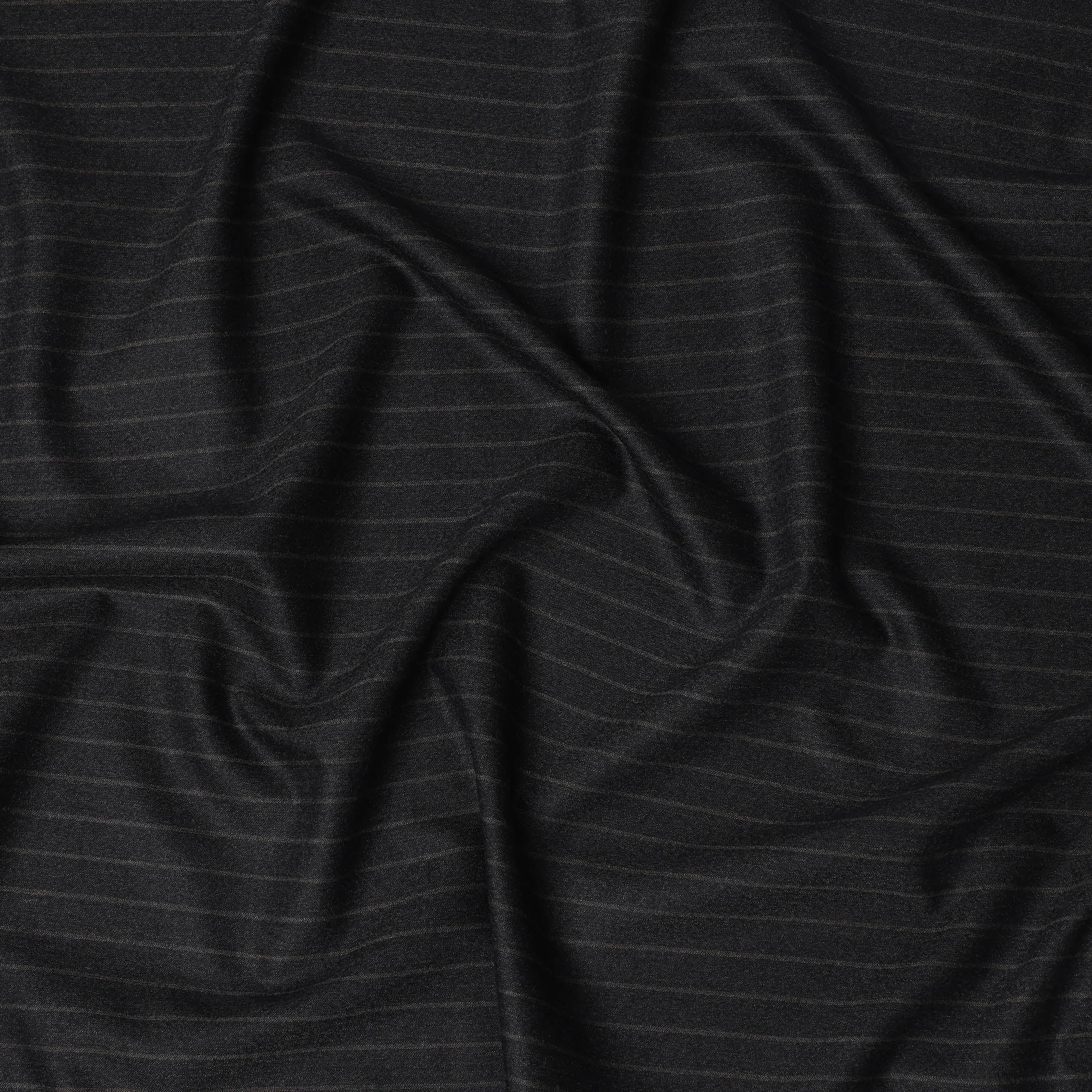Charcoal Black Pinstripe Super 140’s wool fabric offering bold refined elegance