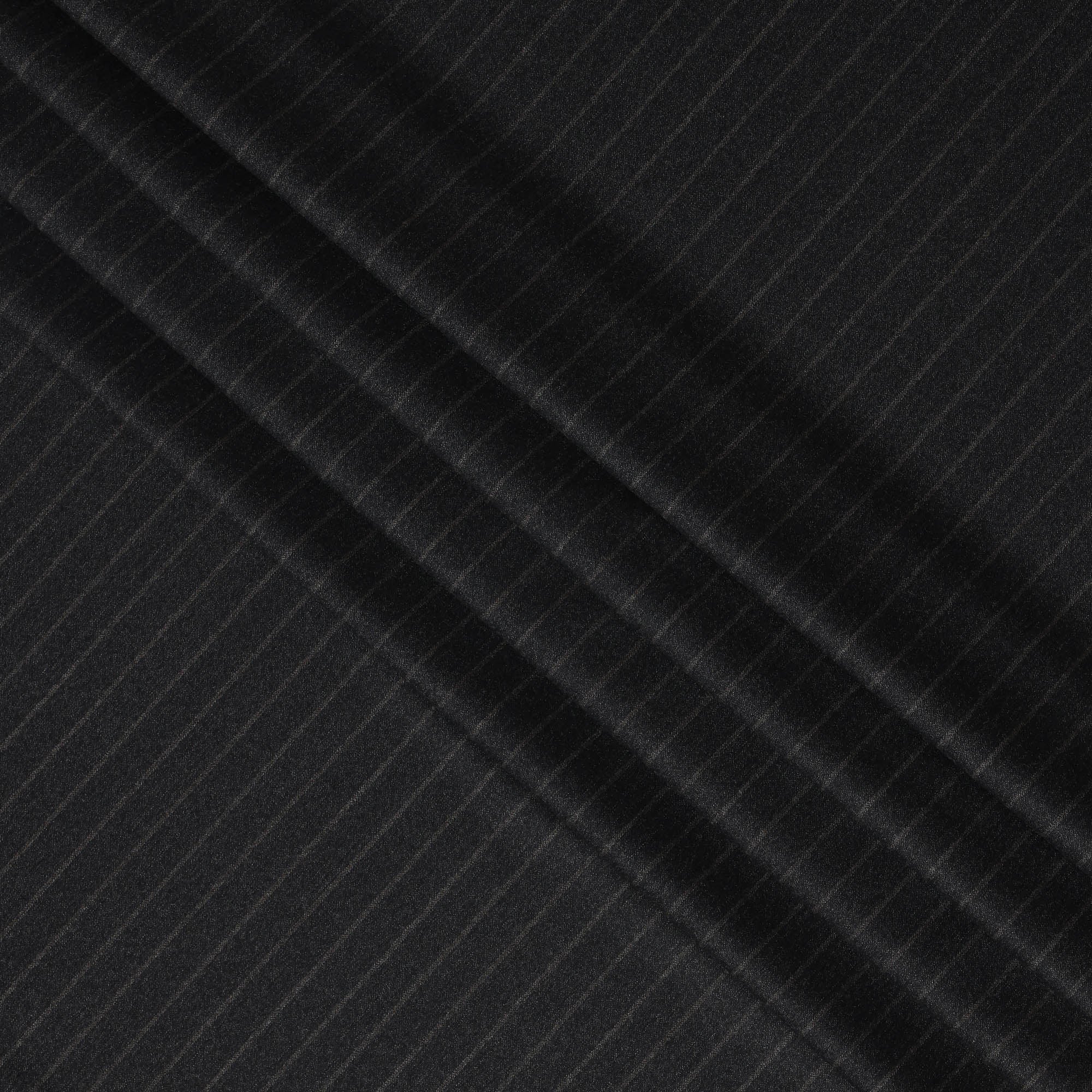 Charcoal Black Pinstripe Premium Super 140’s Italian All Wool Suiting Fabric by CARLO BARBERA, Width 150 Cms, 3.750 Mtrs, Made in Italy-D26562