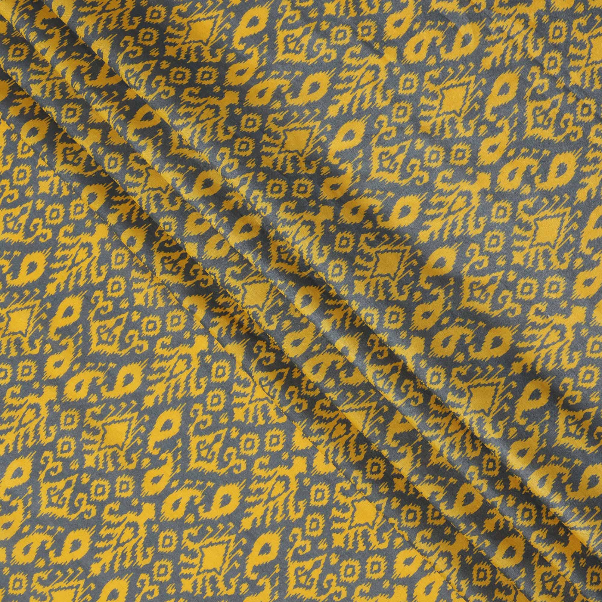 Charcoal Grey and Mustard Yellow Ikat Inspired Geometric Print Cotton Lawn Fabric, 110 Cms Width, Made in India-D23569
